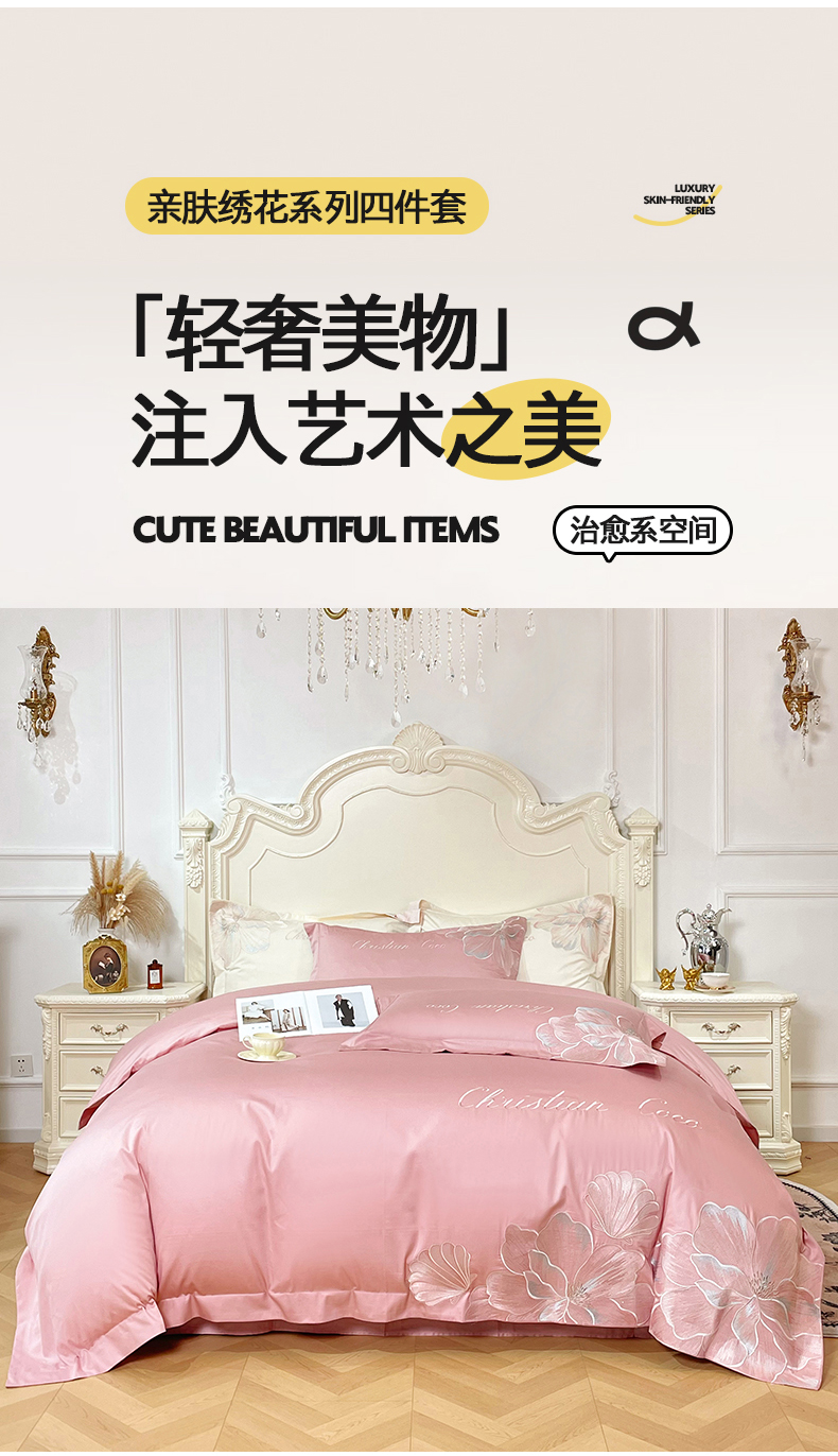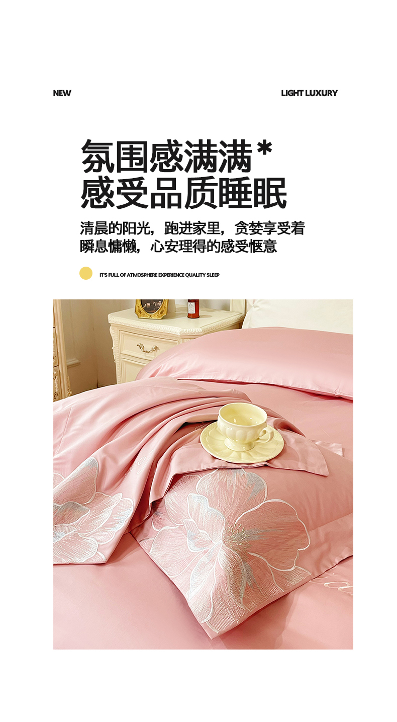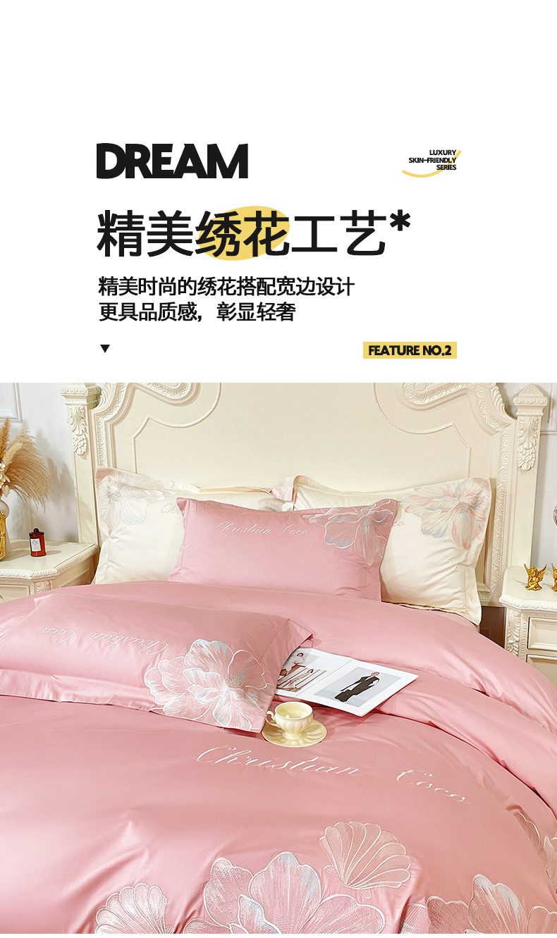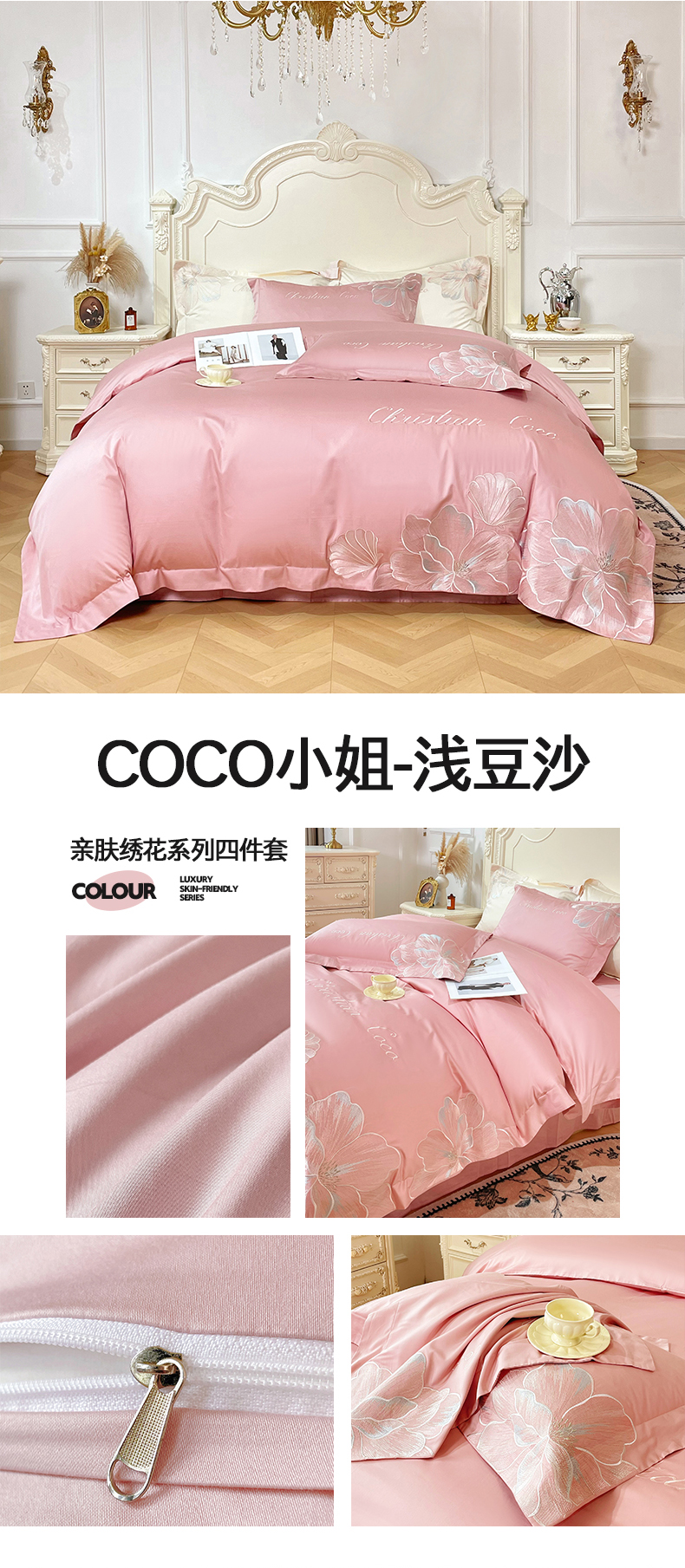 当前位置: 91家纺网 > 商品网购 > 床品套件 > 四件套 > 其它四件套 > 置顶家纺 2026新款亲肤绣花-COCO小姐亲肤棉系列四件套 COCO小姐-浅豆沙