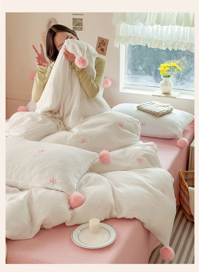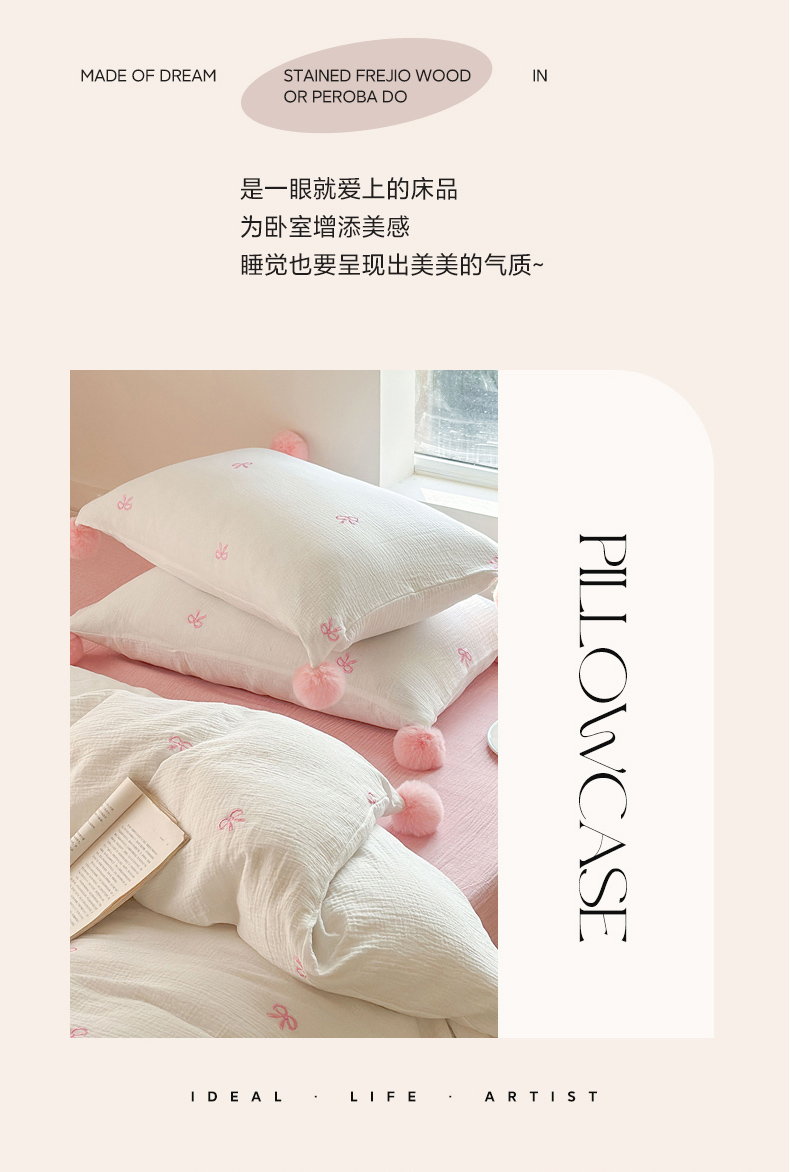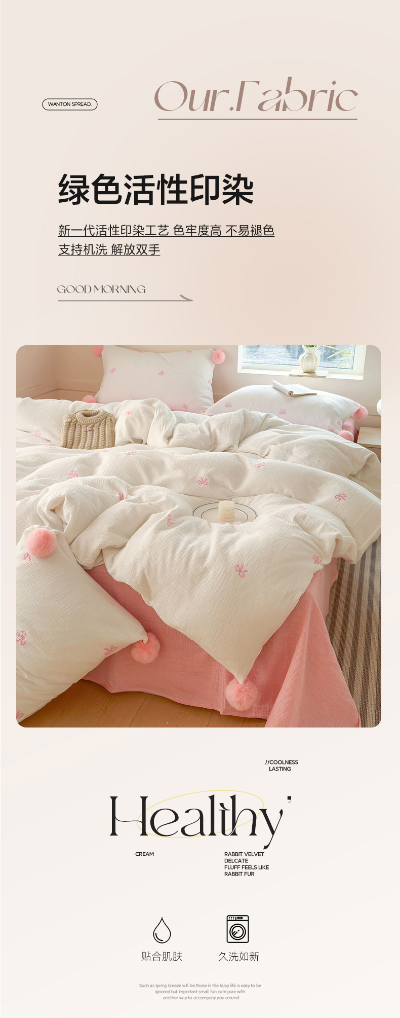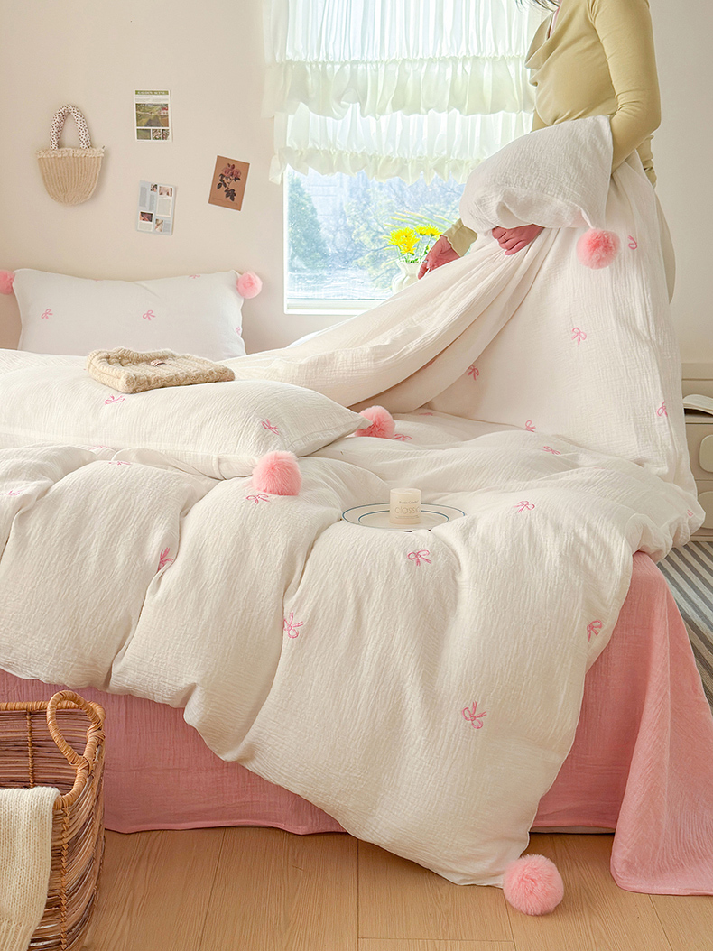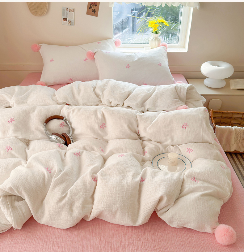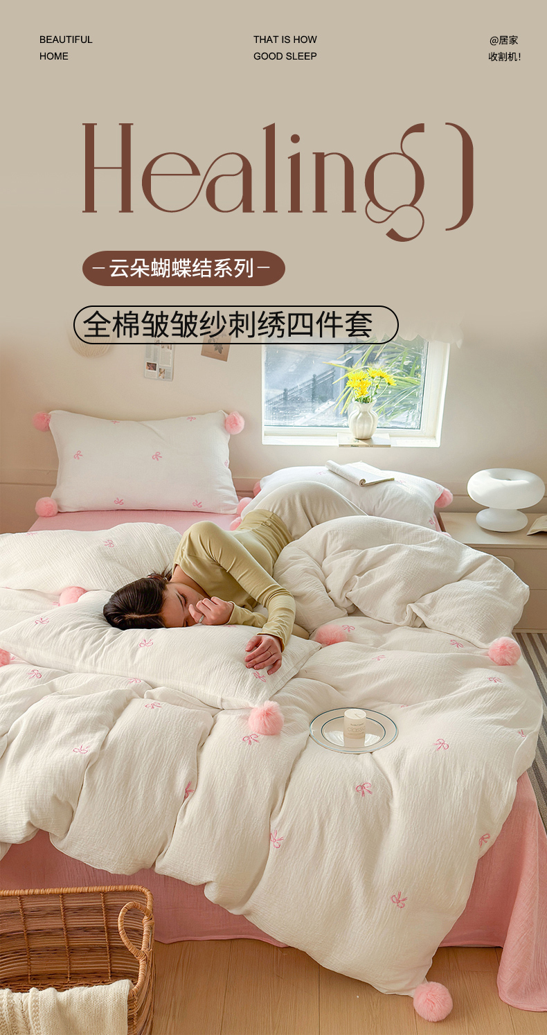 当前位置: 91家纺网 > 商品网购 > 床品套件 > 四件套 > 全棉普通四件套 > 木楌家居 2026年新款全棉纯棉皱皱纱四件套-云朵蝴蝶结系列 云朵蝴蝶结-落樱粉