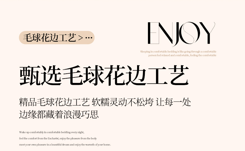 商品名称:吾欢心 2026春夏新款古法水洗仿棉毛球花边款四件套 椿屿