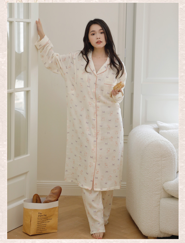 (总)洛兰沙家居馆 棉质秋冬空气棉厚款印花女款睡衣家居服舒适三层夹棉居家,花色1
