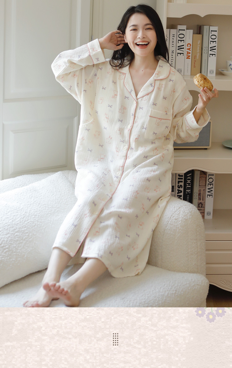 (总)洛兰沙家居馆 26春夏新品睡裙女系带绉布甜美公主风长袖薄款可外穿家居服睡裙,花色1,花色2,花色3,花色4