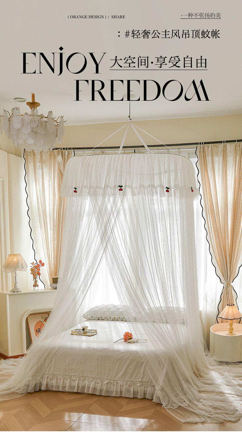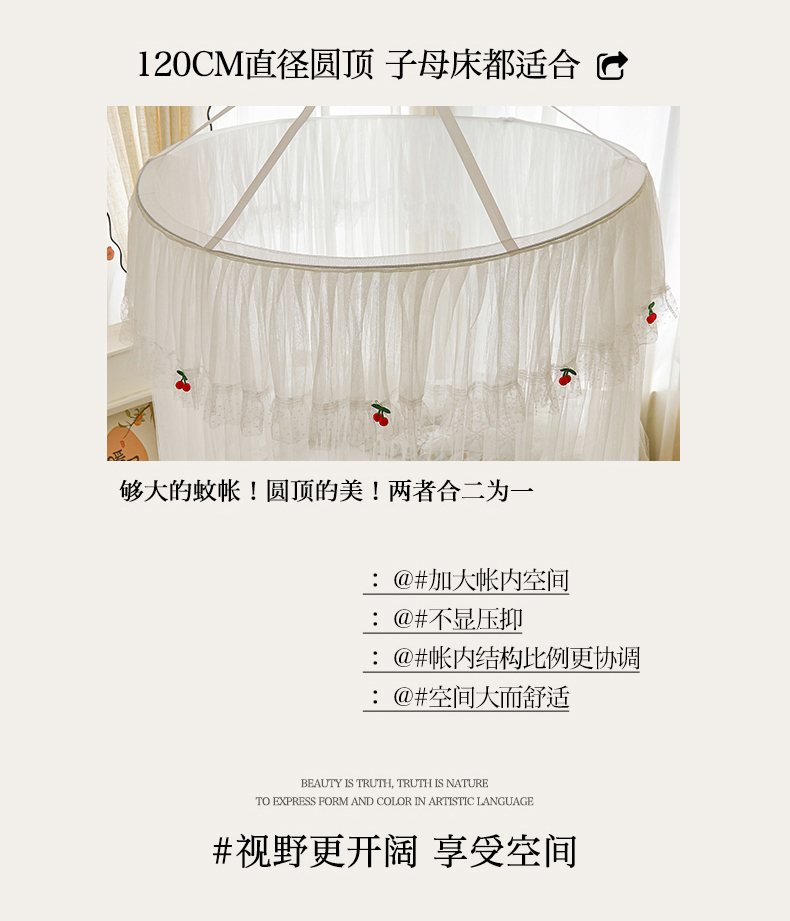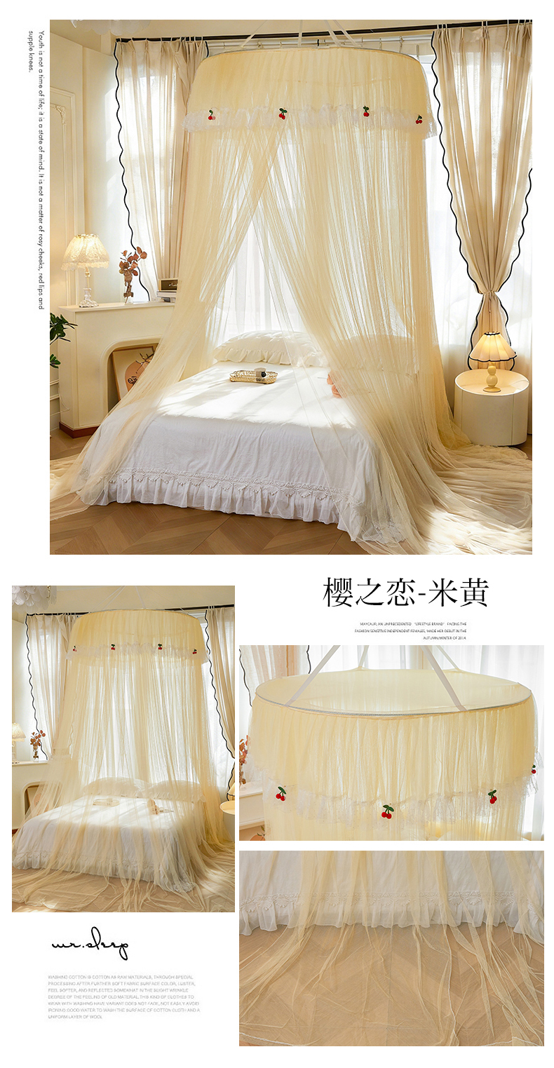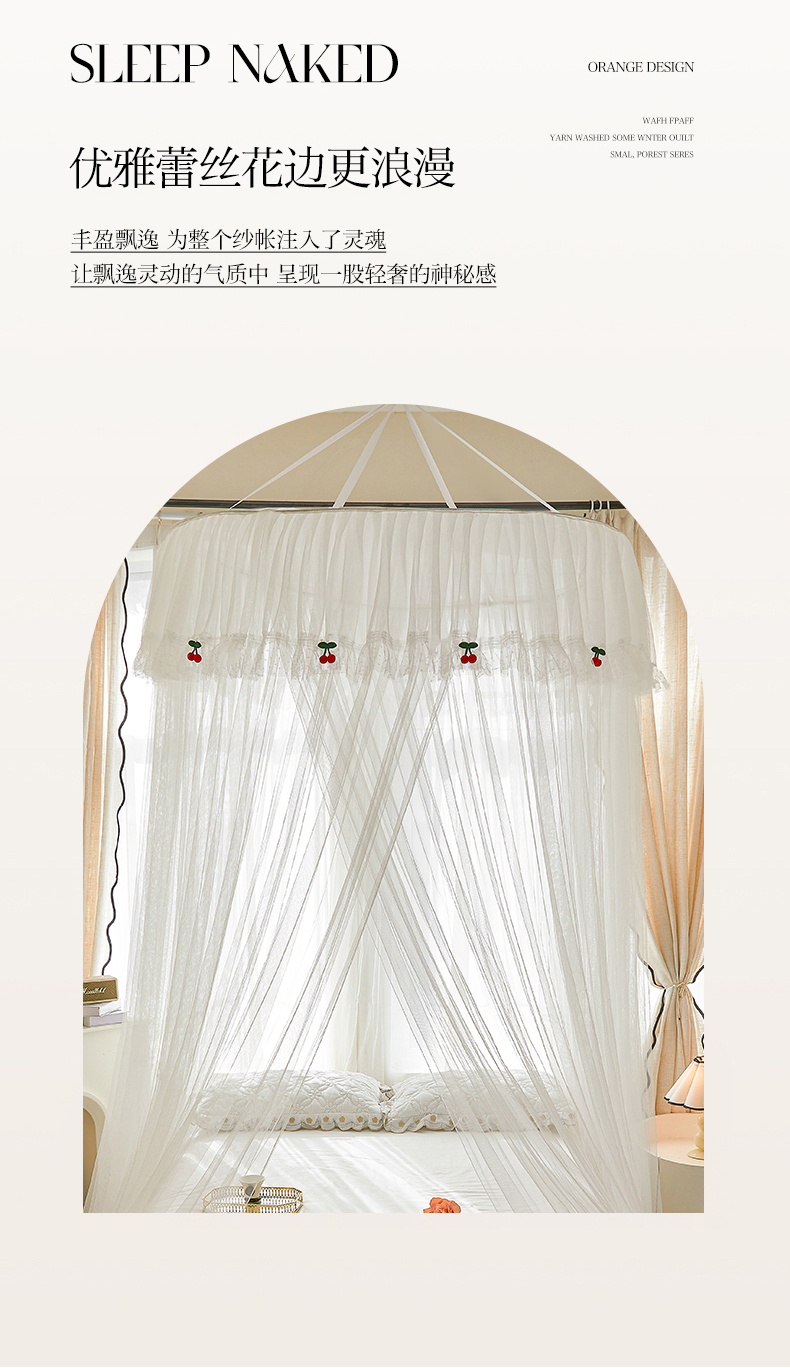 (总)雪姿家纺 2026新款刺绣花边落地宫廷外穿杆蚊帐-落地樱桃,刺绣花边樱桃-烟岚紫灰,刺绣花边樱桃-白色,刺绣花边樱桃-清爽茶绿,刺绣花边樱桃-温柔杏色,刺绣花边樱桃-温馨粉玉