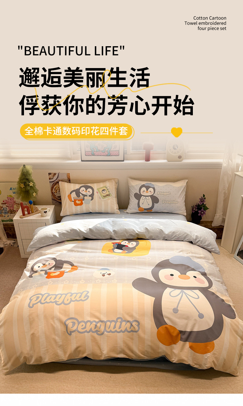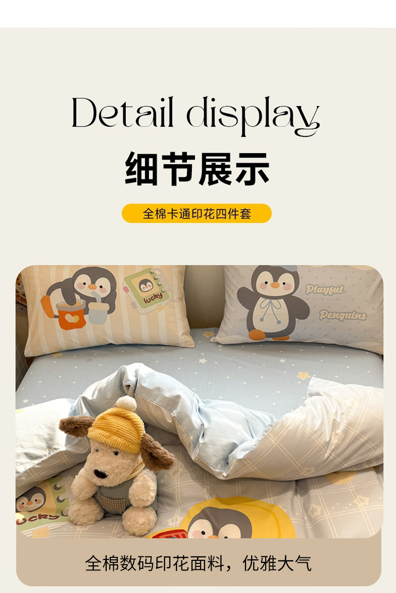 当前位置: 91家纺网 > 商品网购 > 床品套件 > 四件套 > 全棉普通四件套 > 麦田家纺 2026新款全棉13070数码印花四件套 悠闲企鹅(蓝)