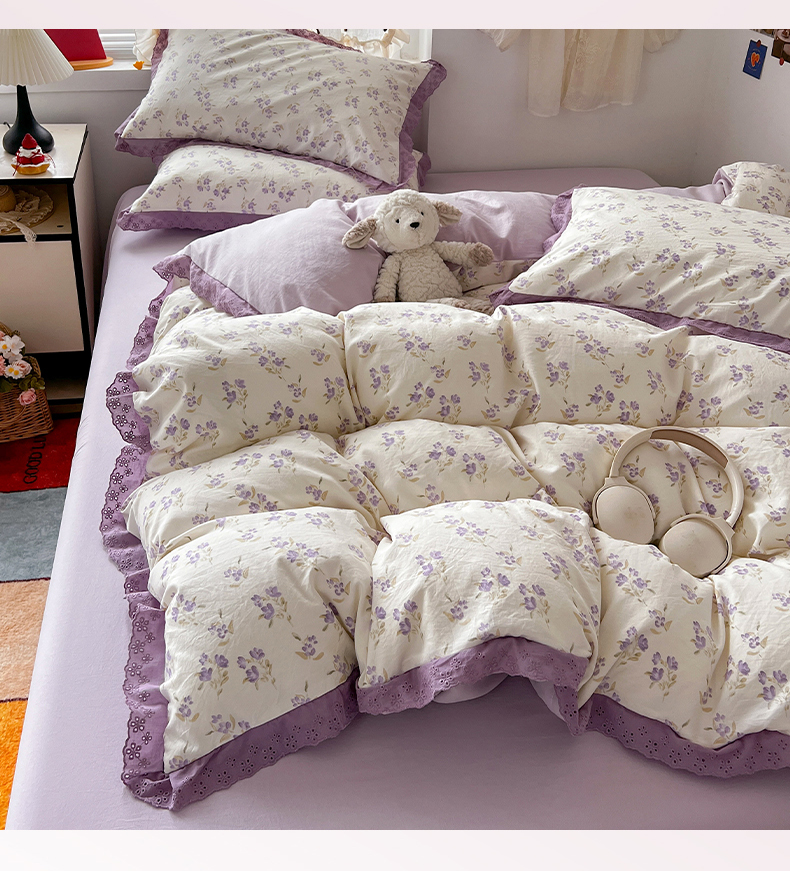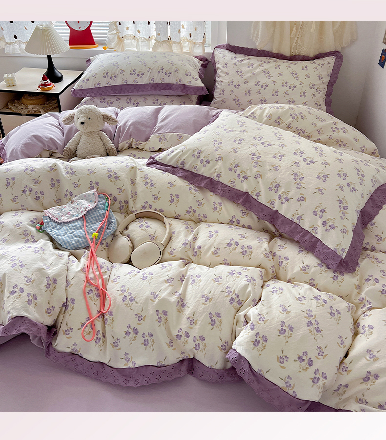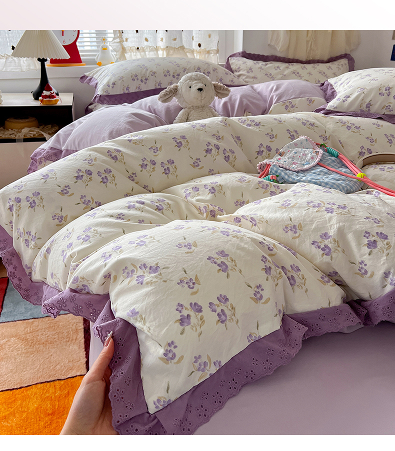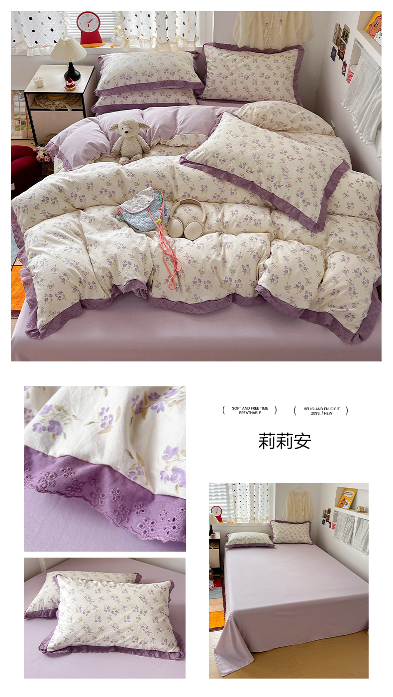 当前位置: 91家纺网 > 商品网购 > 床品套件 > 四件套 > 水洗棉四件套 > 逸林家纺《原希尔顿逸林》 2026新款春款古法水洗棉法式全棉花边四件套森系花边款四件套 莉莉安