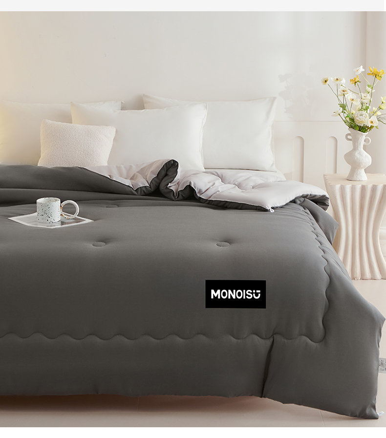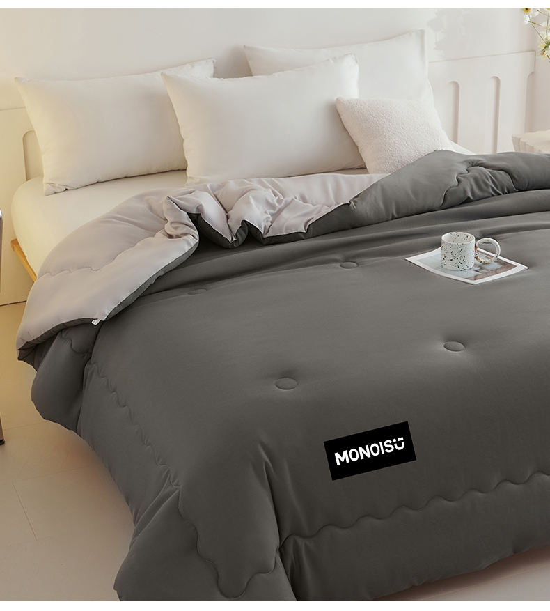 • 91家纺网 家纺一手货源 找家纺 好尚居 2026新款A类双拼贴标大豆被 深灰拼浅灰
