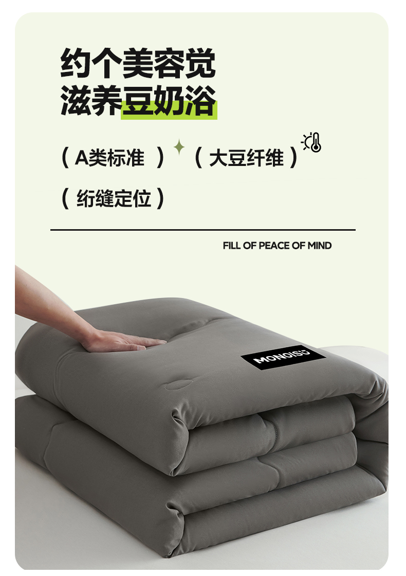 好尚居 2026新款A类双拼贴标大豆被 深灰拼浅灰
