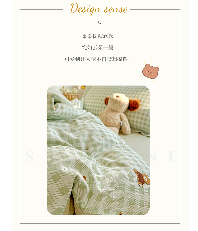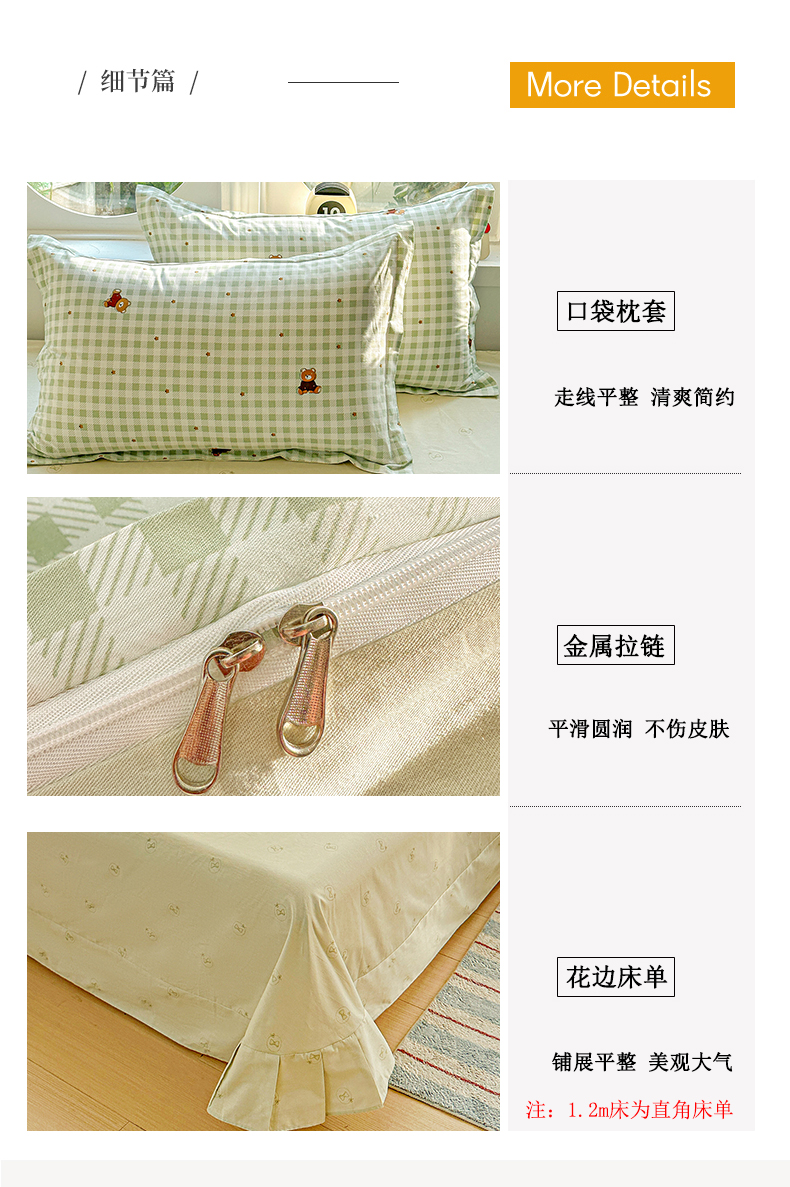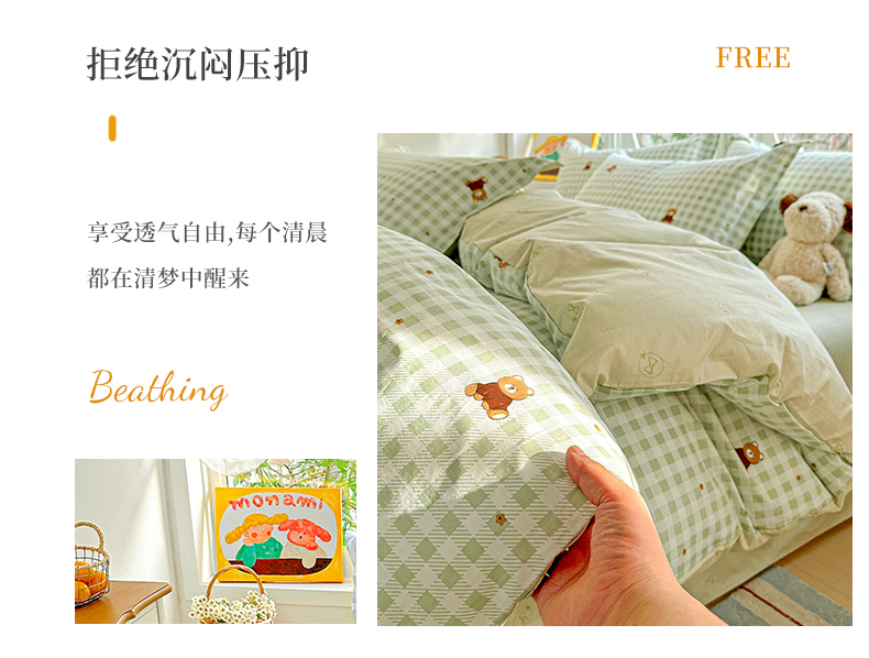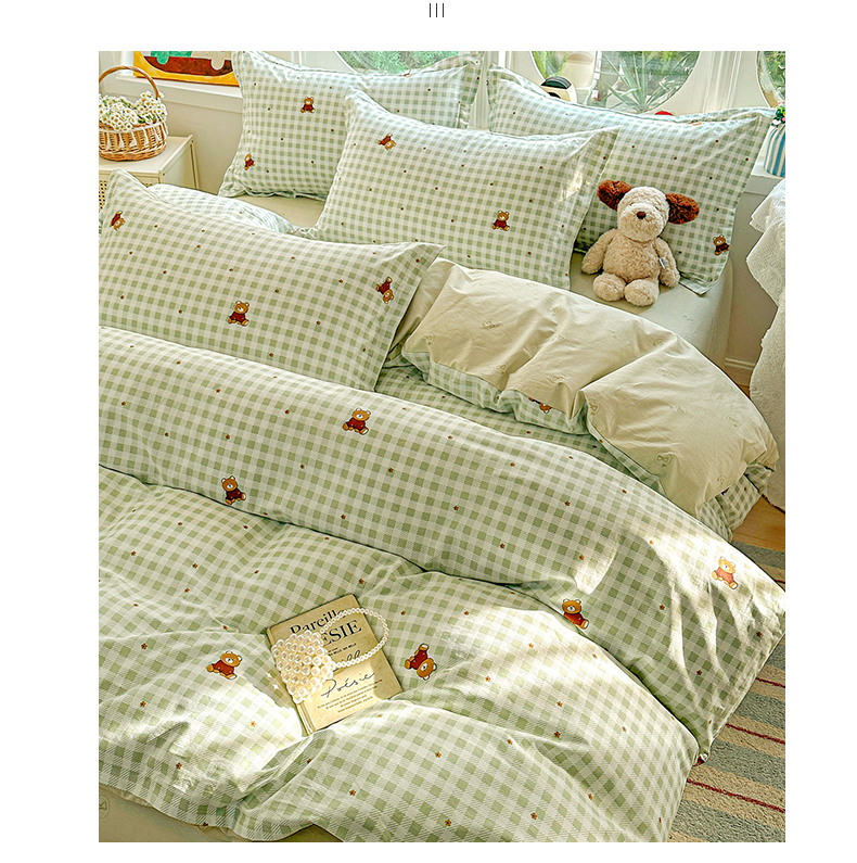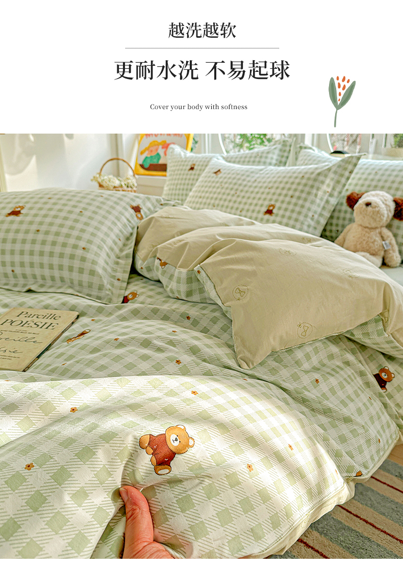 当前位置: 91家纺网 > 商品网购 > 床品套件 > 四件套 > 全棉普通四件套 > 佳汐蓝家纺 2026新款全棉纯棉加厚13376印花四件套 绿格小熊