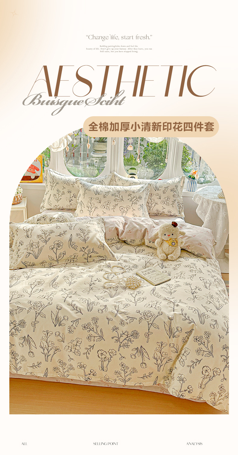 当前位置: 91家纺网 > 商品网购 > 床品套件 > 四件套 > 全棉普通四件套 > 佳汐蓝家纺 2026新款全棉纯棉加厚13376印花四件套 沫恋