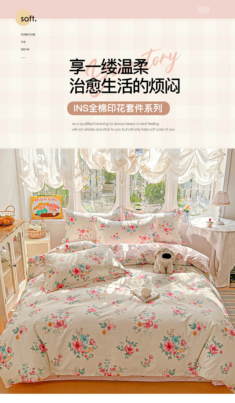 当前位置: 91家纺网 > 商品网购 > 床品套件 > 四件套 > 全棉普通四件套 > 佳汐蓝家纺 2026新款全棉纯棉加厚13376印花四件套 馨兰