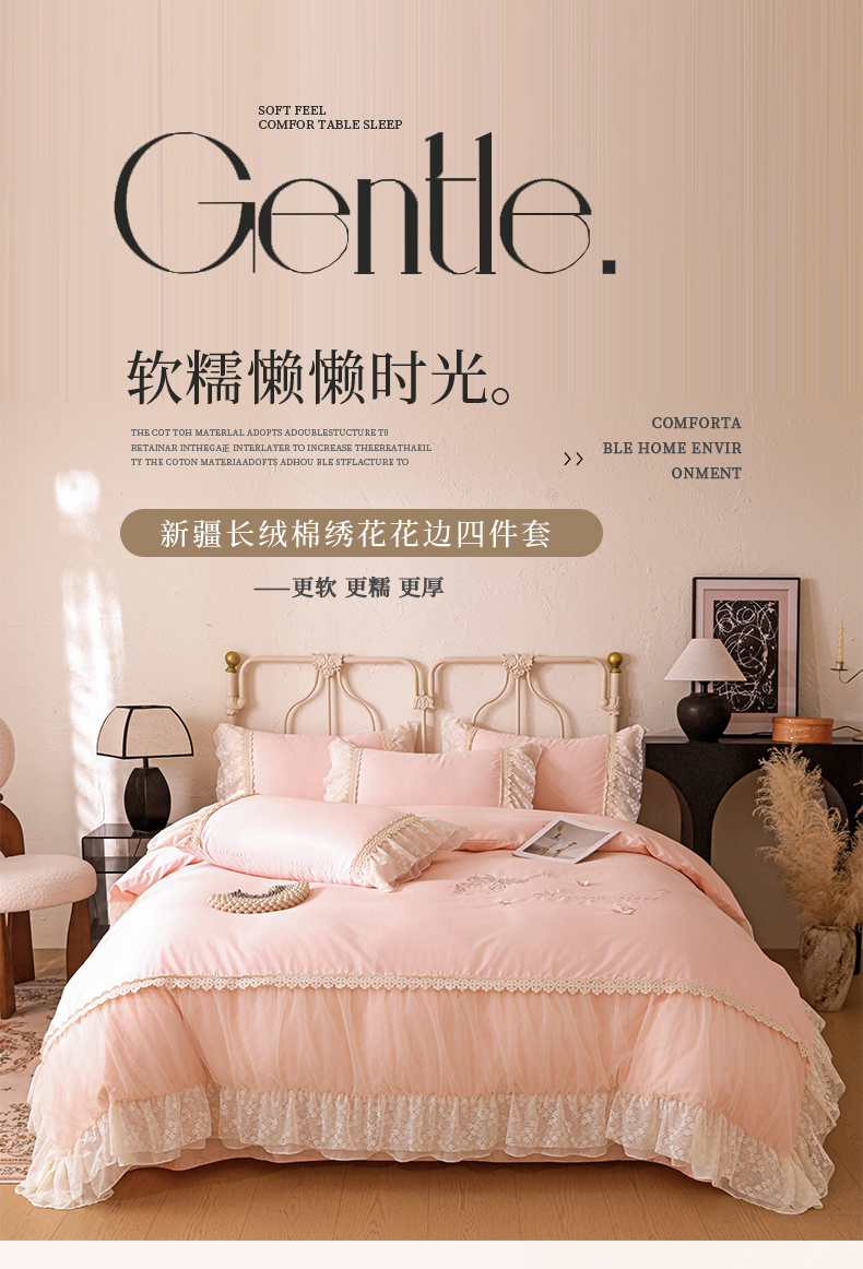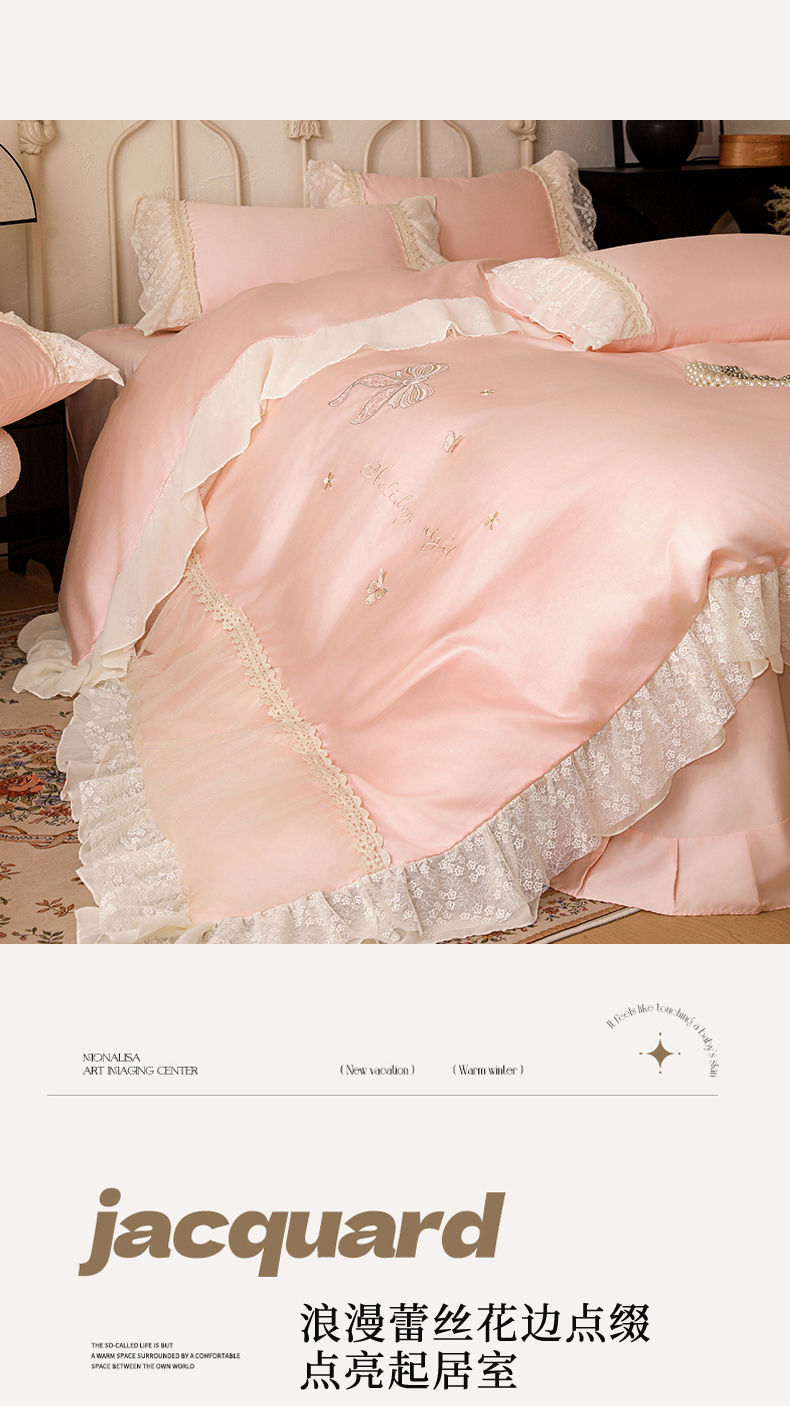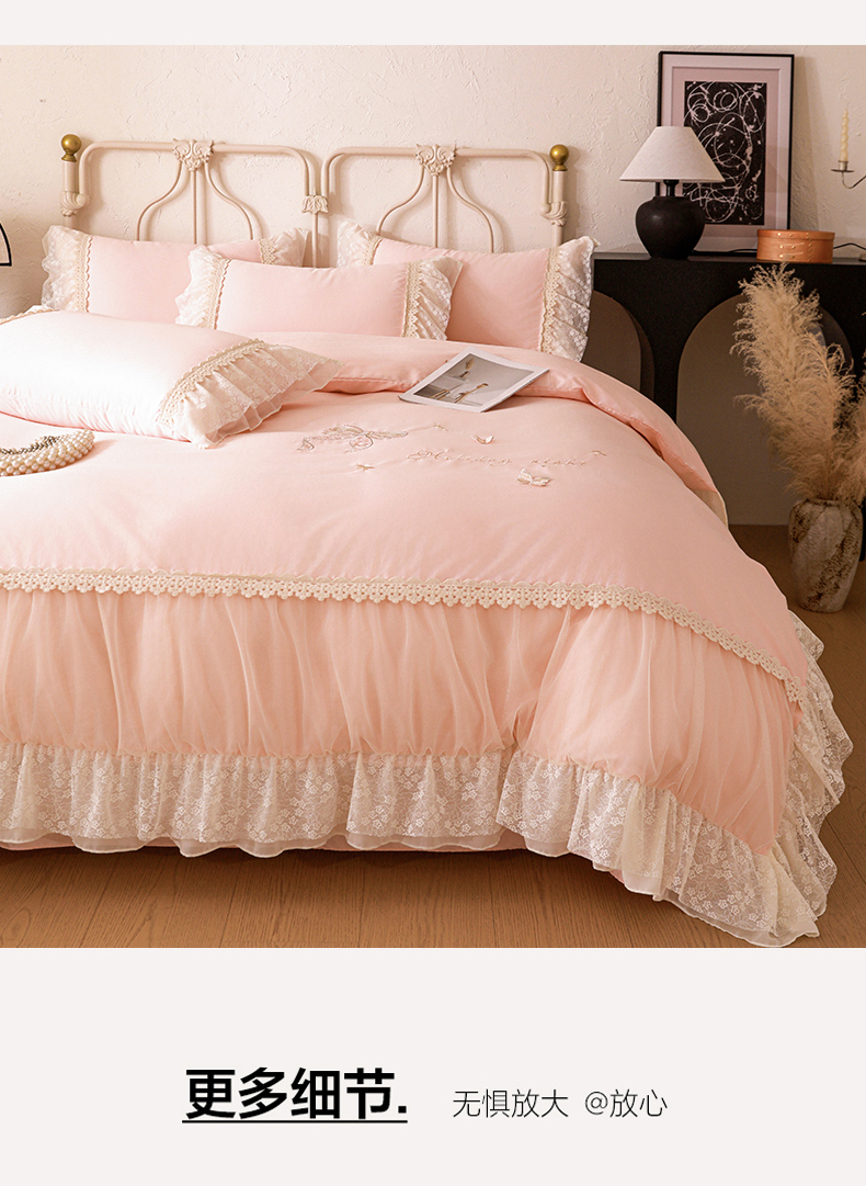 (总)迪欧芙2023新纯棉全棉喷气13372公主风四件套妮可,妮可-奶油白,妮可-少女粉,妮可-天空蓝