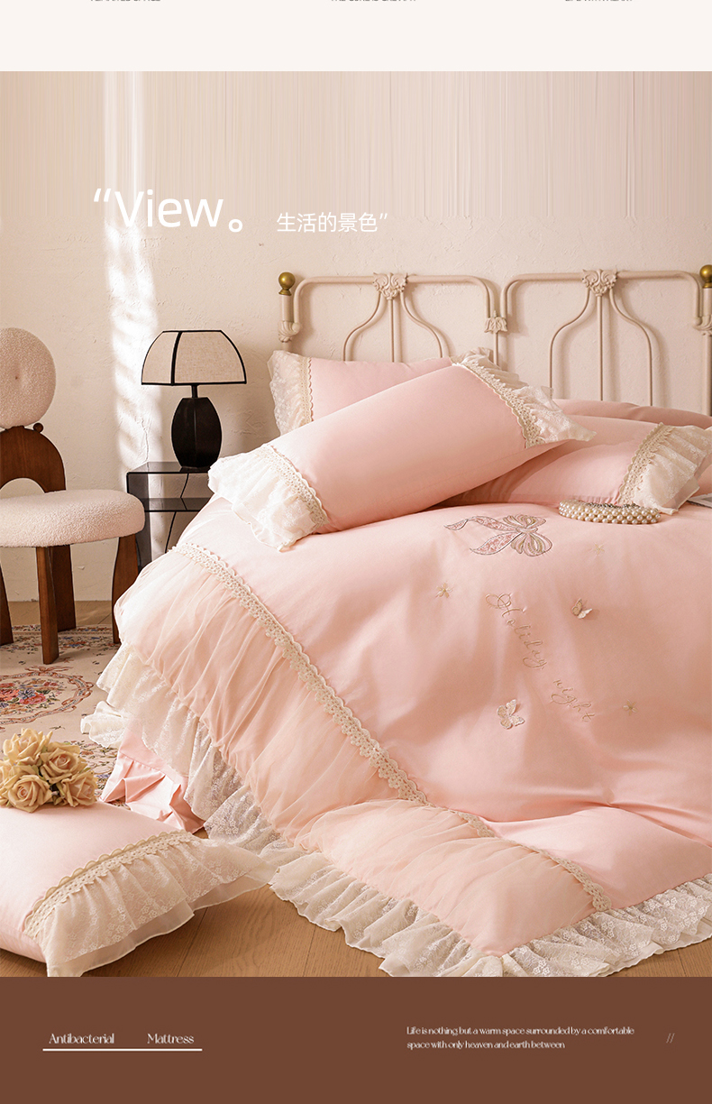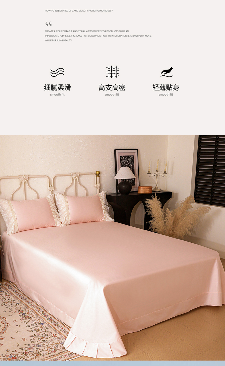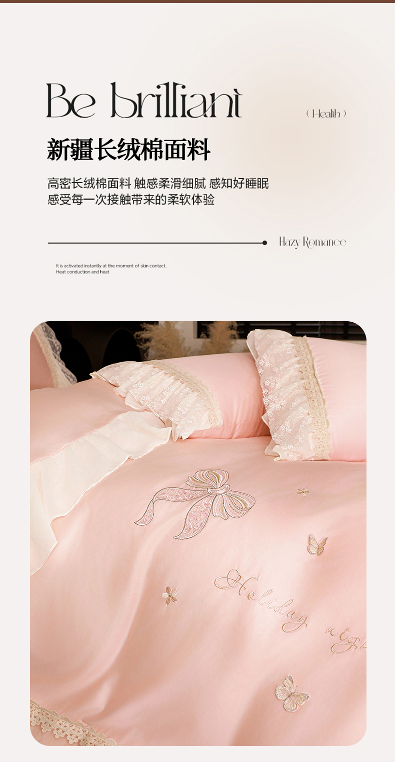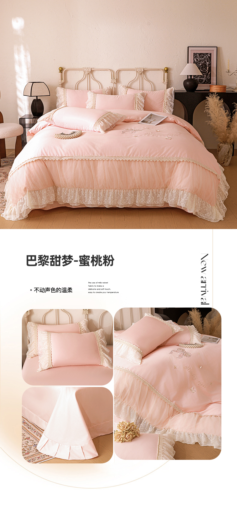 商品名称:迪欧芙 2026新款长绒棉全棉纯棉刺绣床单款四件套-巴黎甜梦 巴黎甜梦-蜜桃粉
