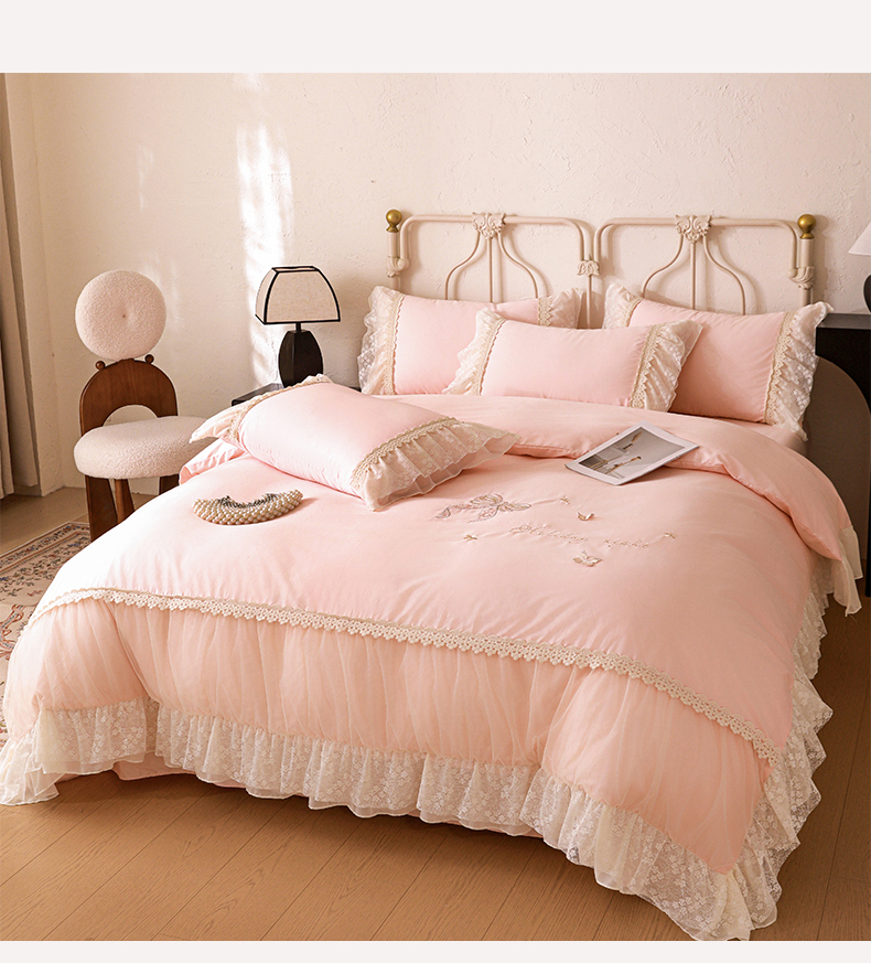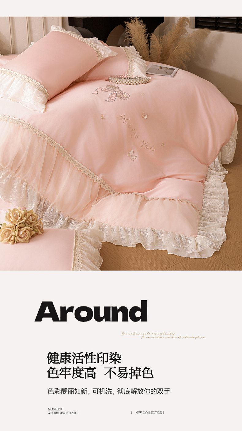 (总)迪欧芙 2023新款13372全棉公主风四件套-伊莉莎,粉玉,黄,蓝
