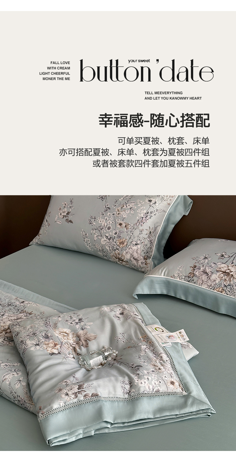 娇逸家居 2026新款60s天丝数码印花夏被夏凉被空调被四件套 沐初