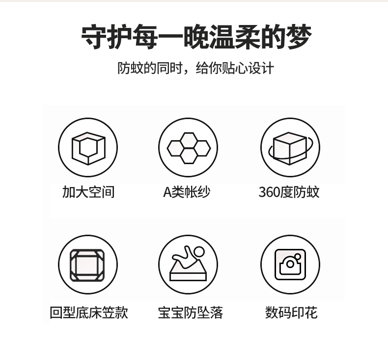 商品名称:(总)雪姿家纺 2026新款外穿杆三开u型门回底床笠款防摔蚊帐-星梦