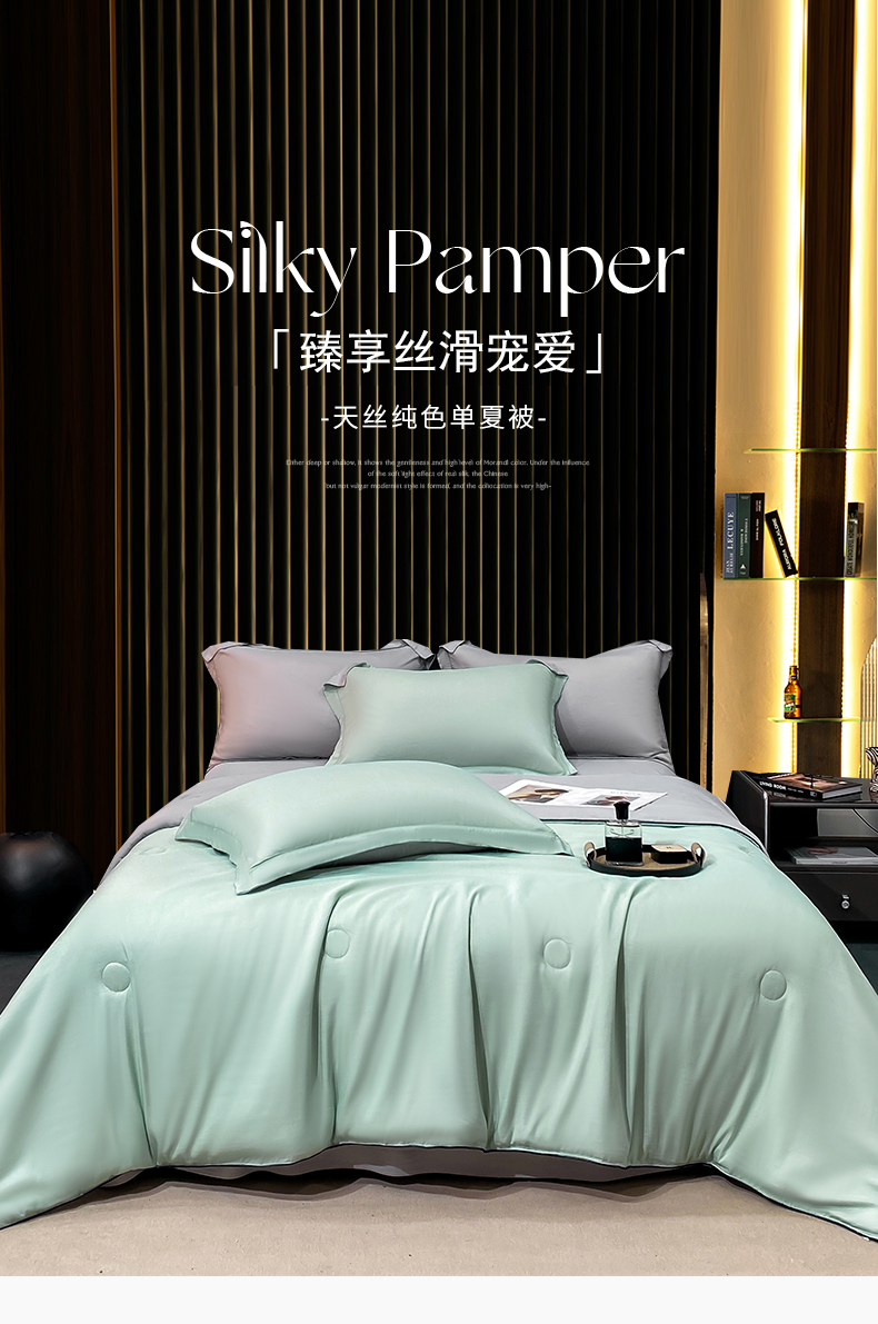• 91家纺网 家纺一手货源 找家纺 绒棉世家 2026新款100%莱赛尔纯色天丝面料夏被四件套终版 香芋紫