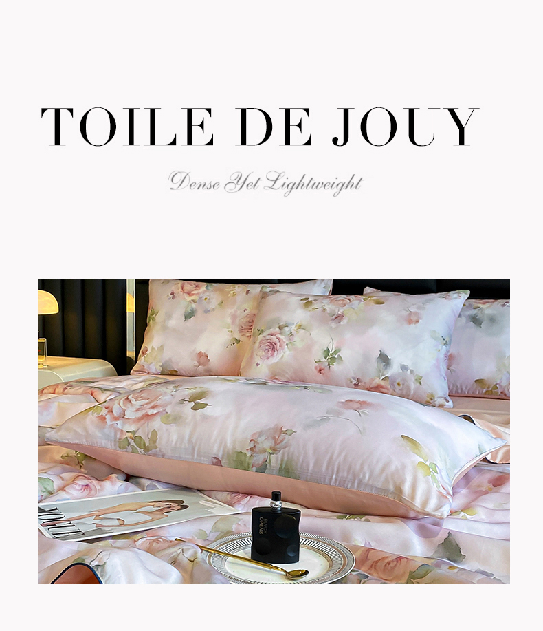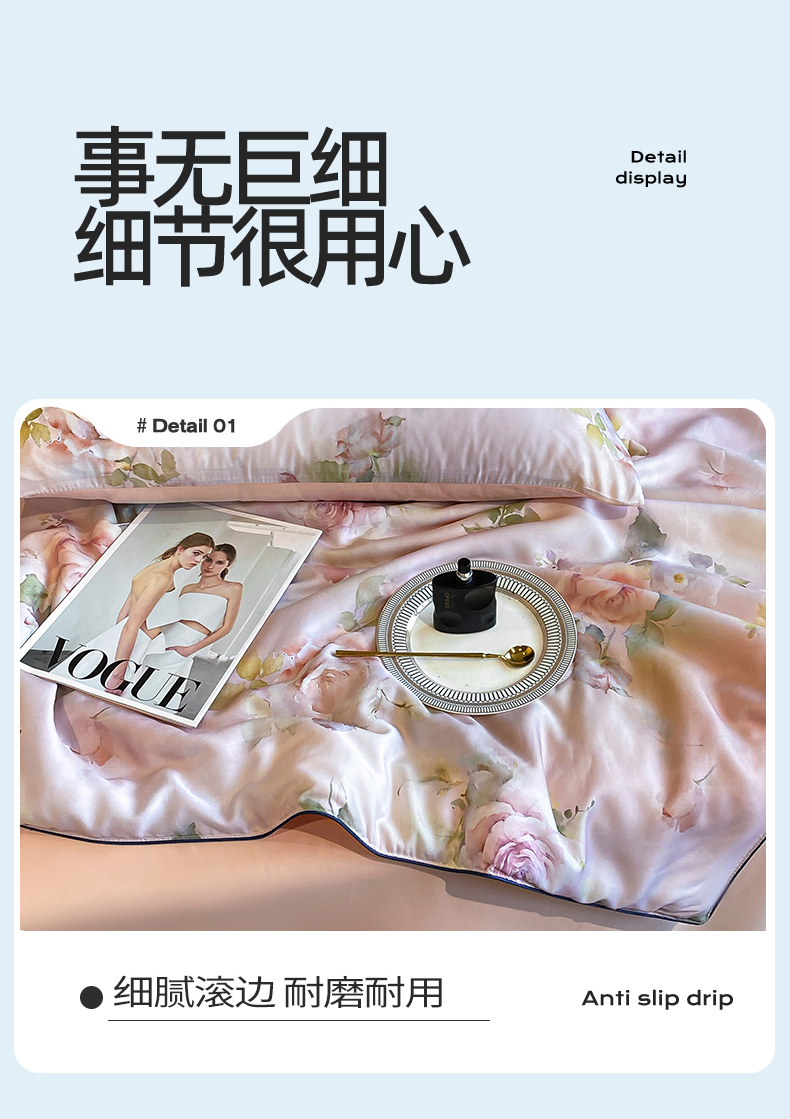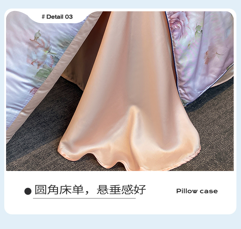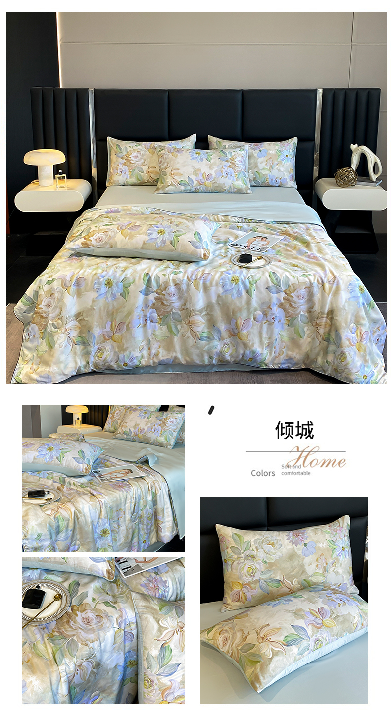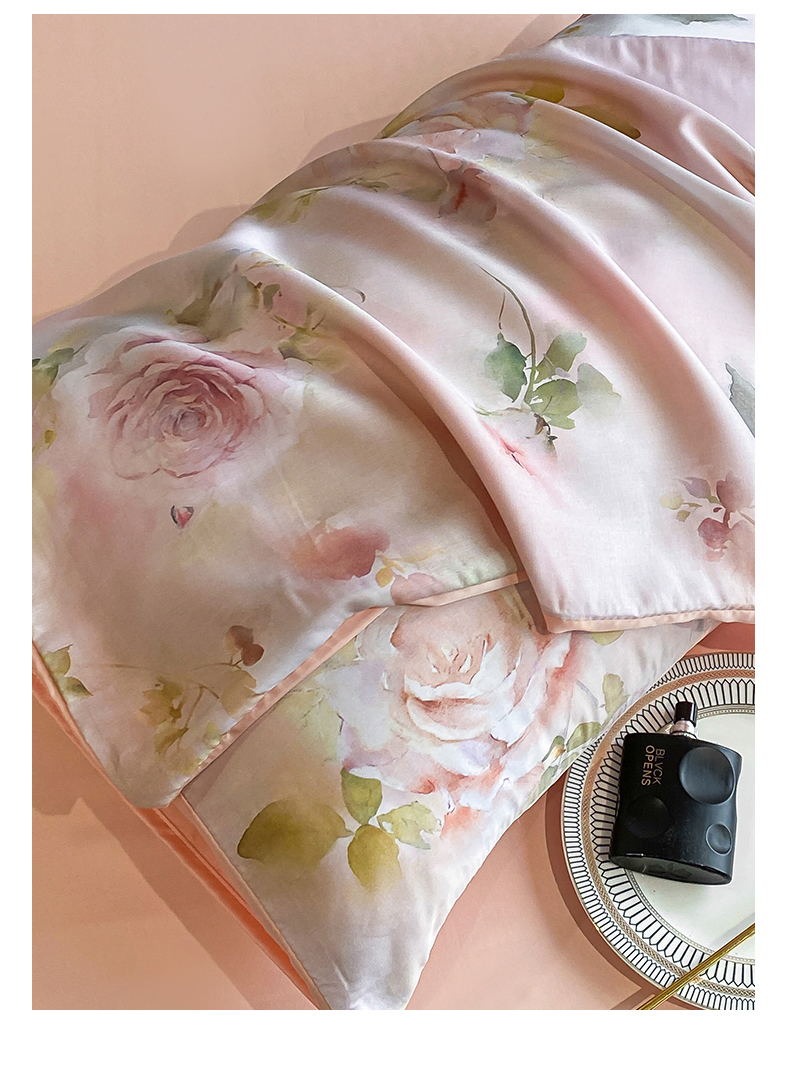 商品名称:绒棉世家 2026新款100%莱赛尔天丝面料数码印花天丝夏被四件套 陌上花开-粉