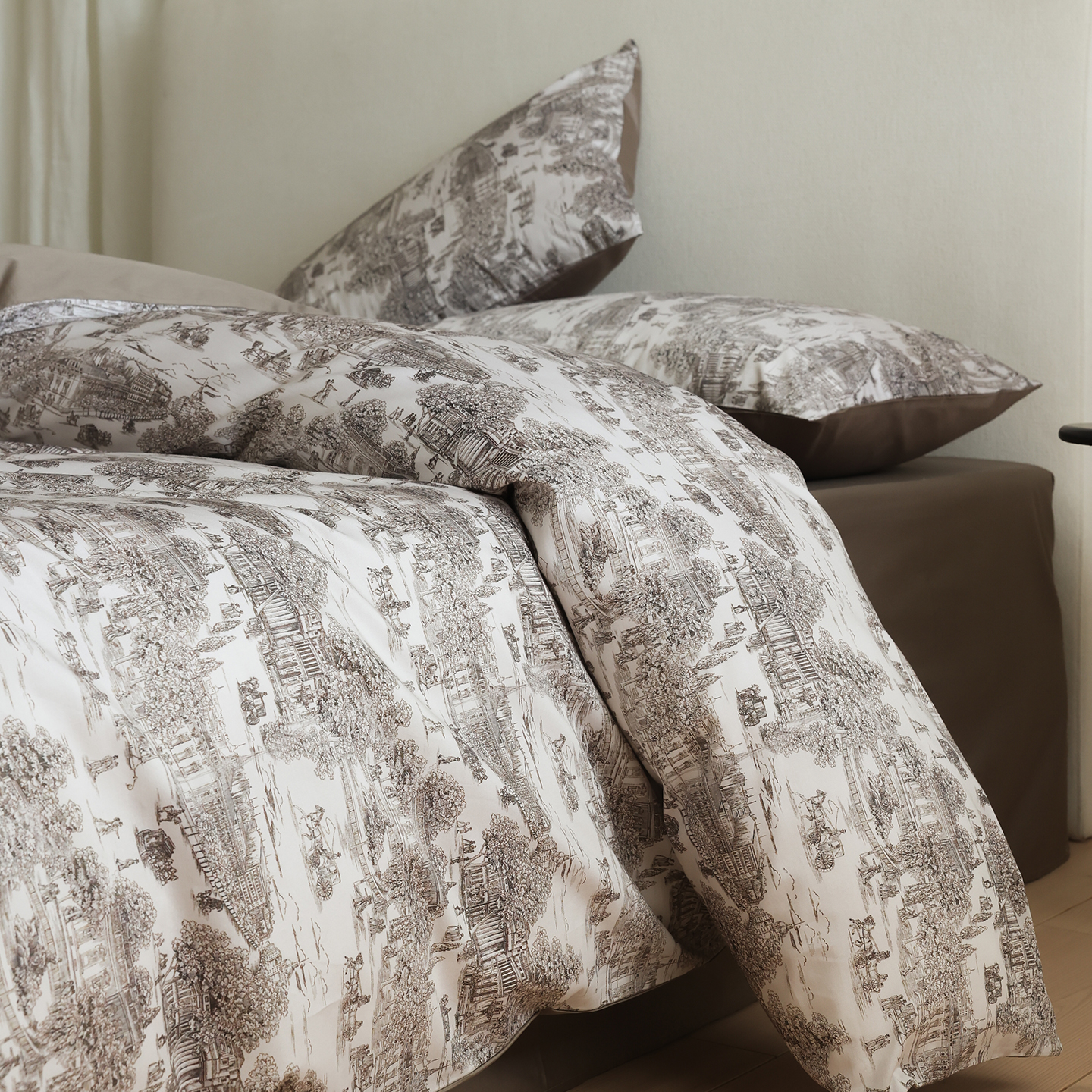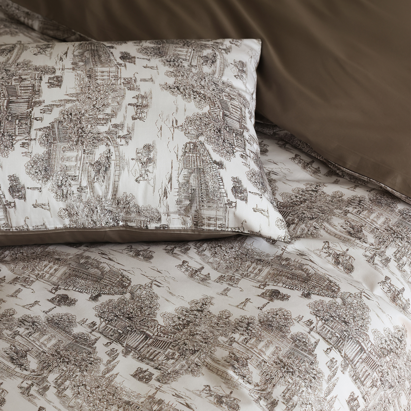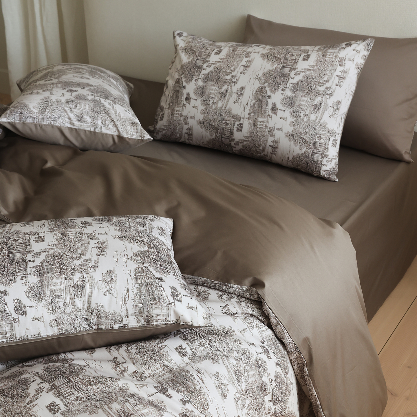 (总)ONE TWO ONE 121 【会员-20】【控价商品】【提供买家秀】【专版花型】2026新款100s长绒棉全棉床上用品数码印花四件套-听潮絮语,听潮絮语-海蓝,听潮絮语-暖咖