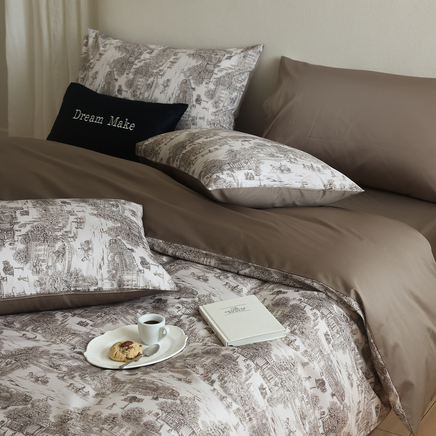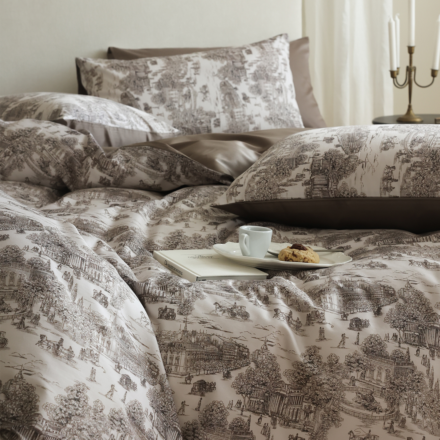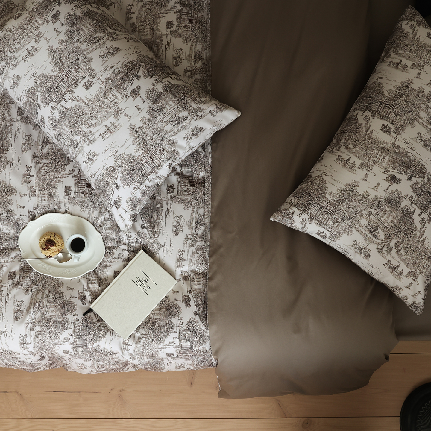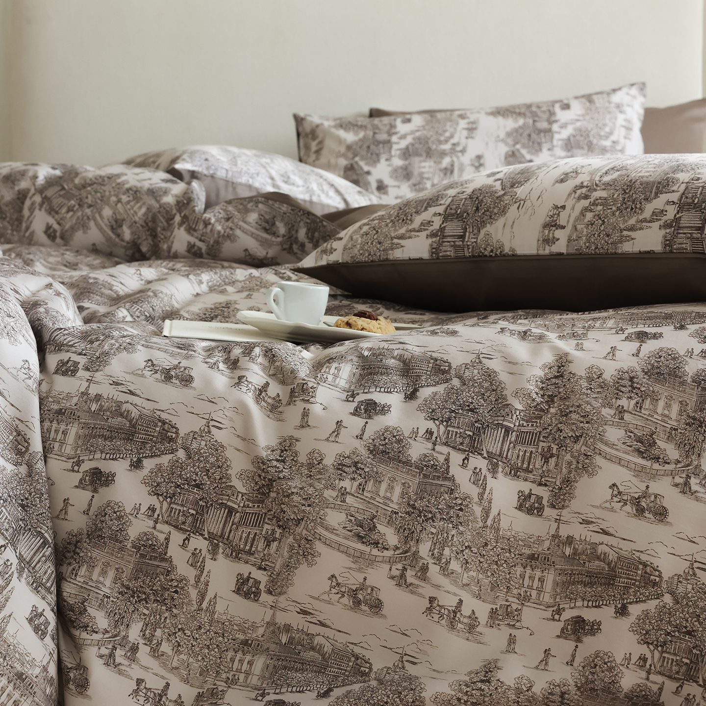 (总)ONE TWO ONE 121 【会员-20】【控价商品】【提供买家秀】【专版花型】2026新款100s长绒棉全棉床上用品数码印花四件套-听潮絮语,听潮絮语-海蓝,听潮絮语-暖咖
