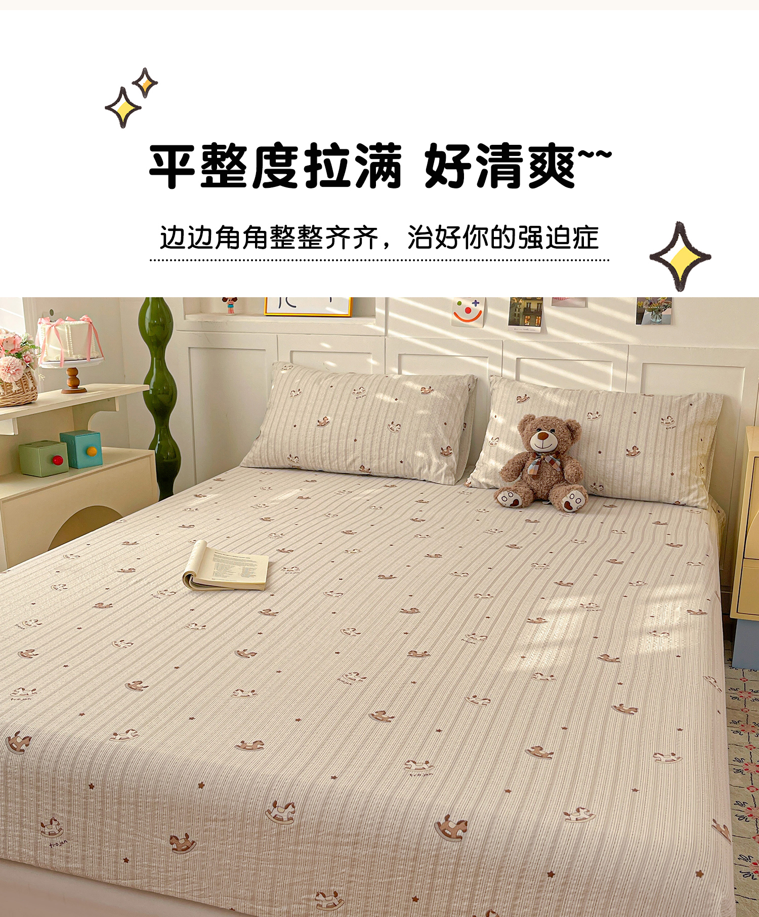 (总)小桃姐家纺 2026新款全棉纯棉贝壳边三角针单枕套双层纱枕套单件儿童枕套,芋泥兔兔,动物派对,可爱星星人,绿意盎然,萌趣木马,组合图(仅供展示不可下单)