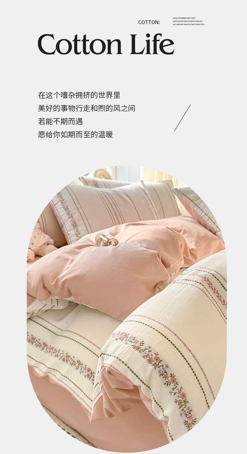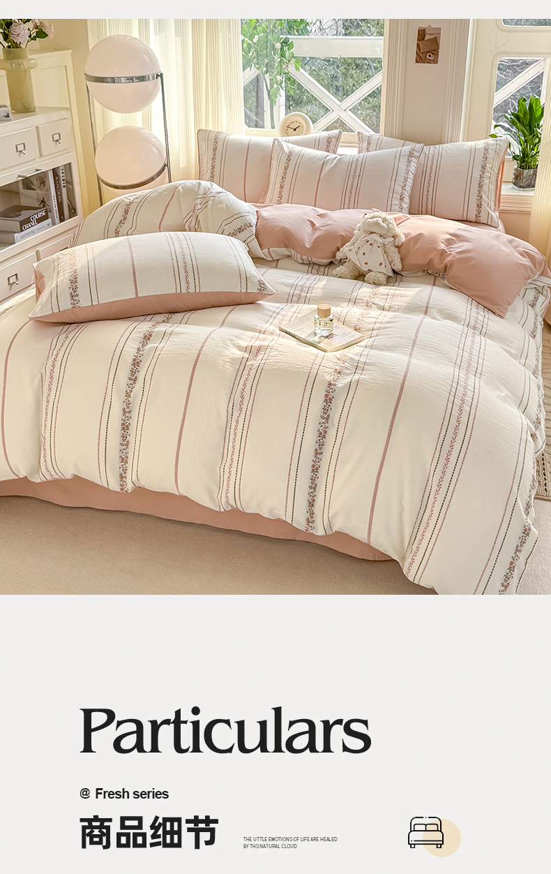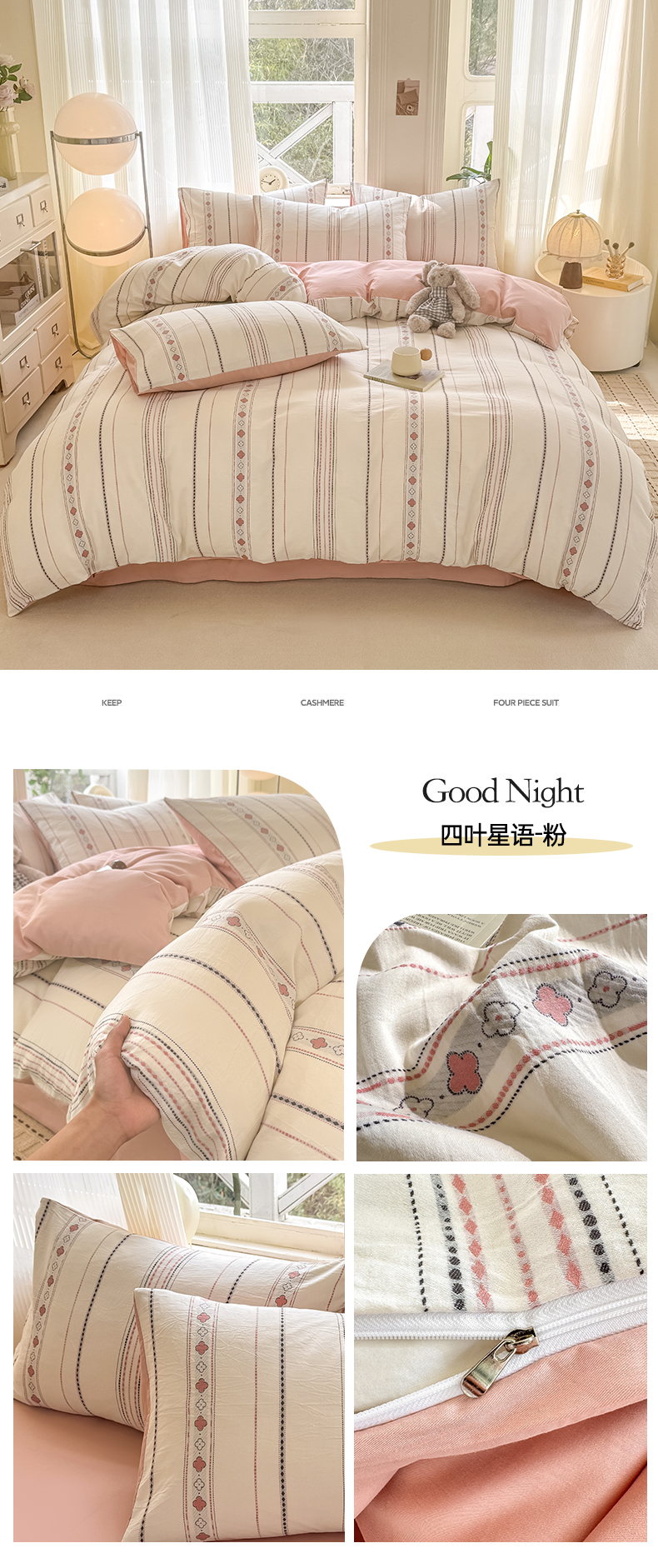 当前位置: 91家纺网 > 商品网购 > 床品套件 > 四件套 > 全棉普通四件套 > 灰鲸 2026新款A类全棉纯棉色织提花四件套 罗兰-粉