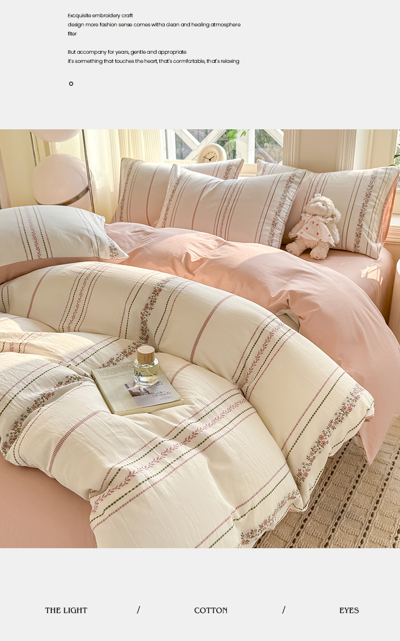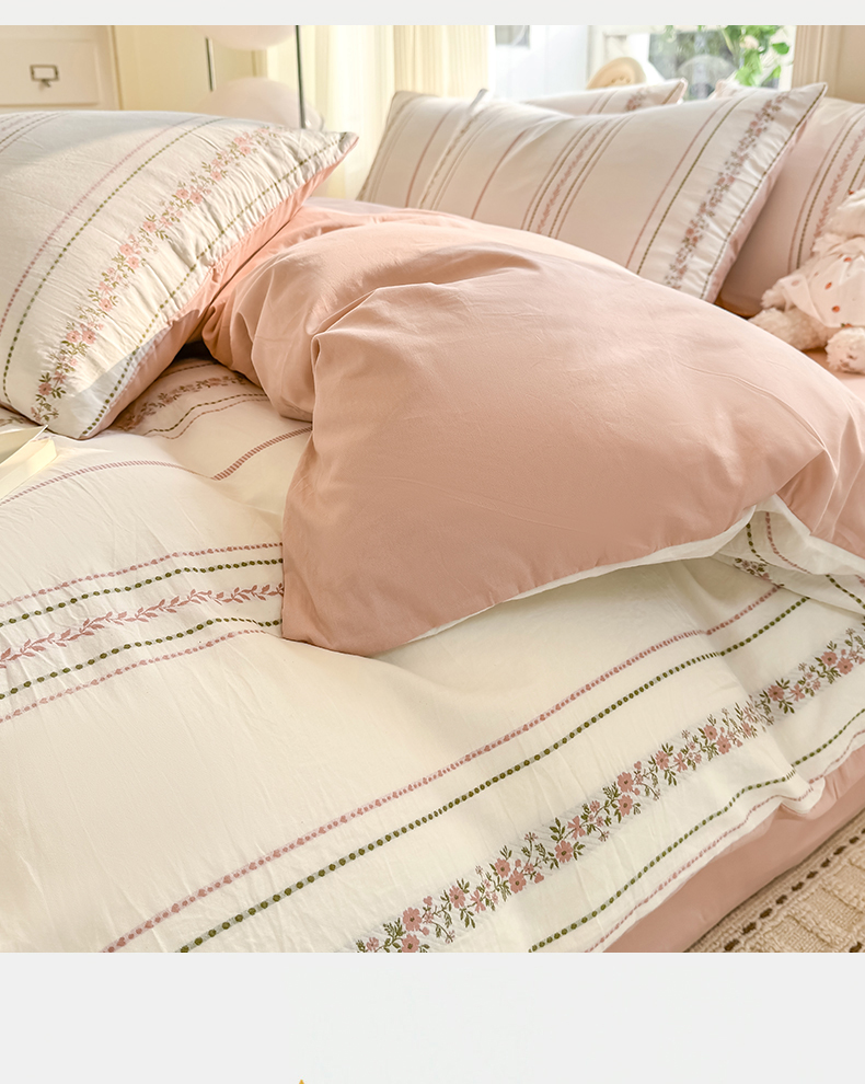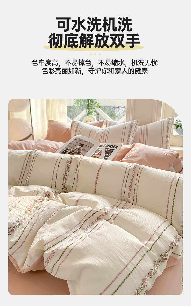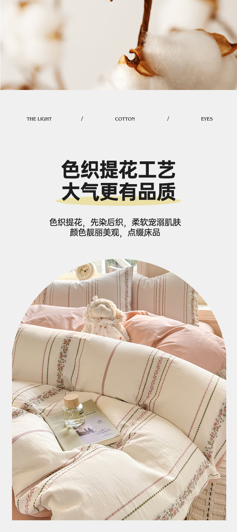 当前位置: 91家纺网 > 商品网购 > 床品套件 > 四件套 > 全棉普通四件套 > 灰鲸 2026新款A类全棉纯棉色织提花四件套 罗兰-粉