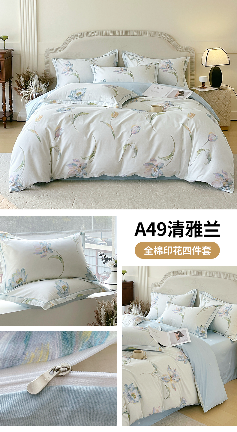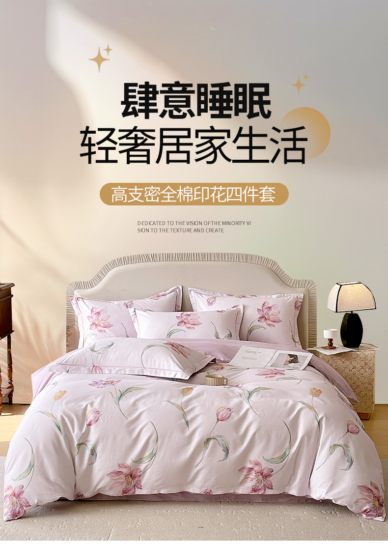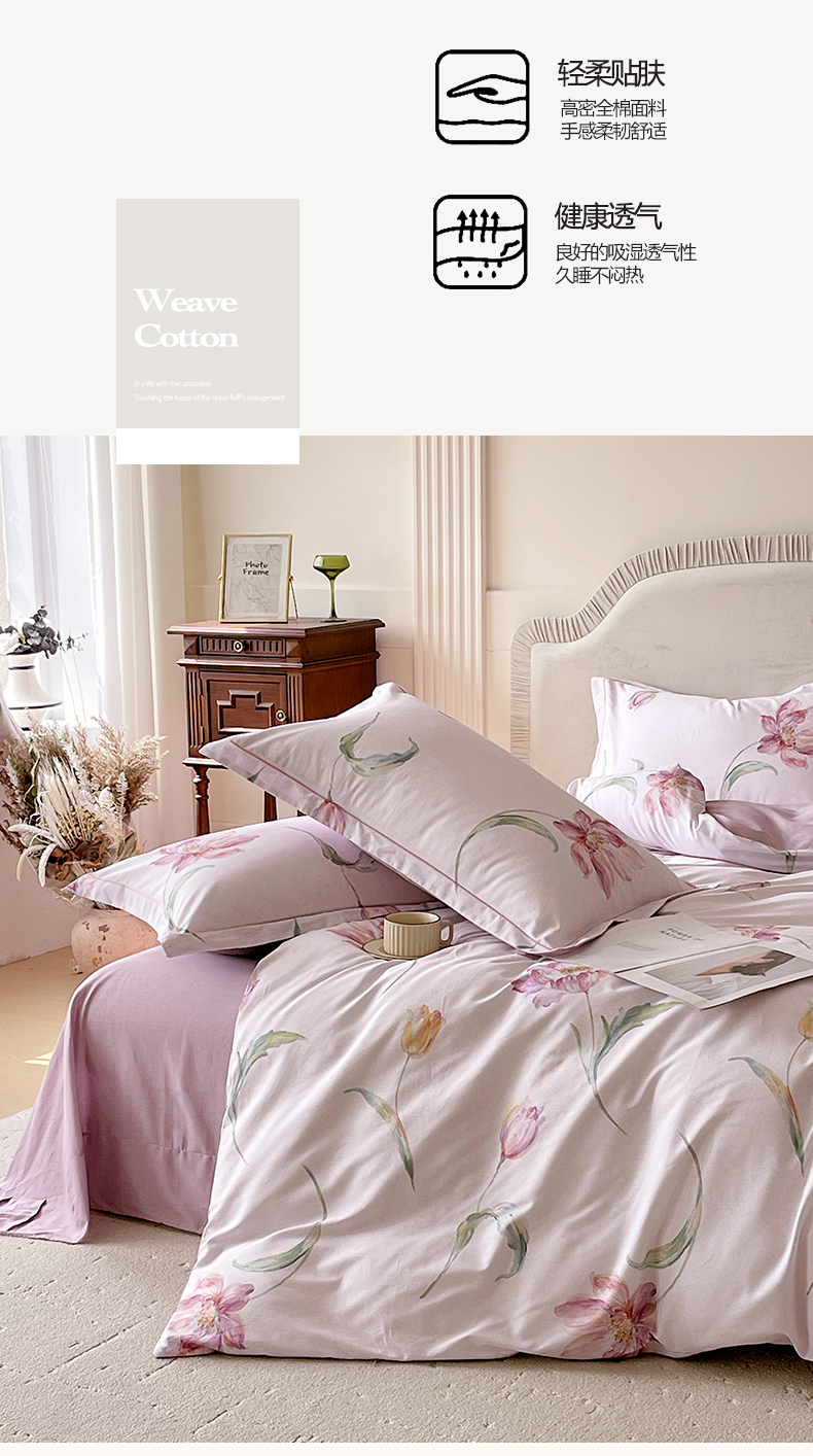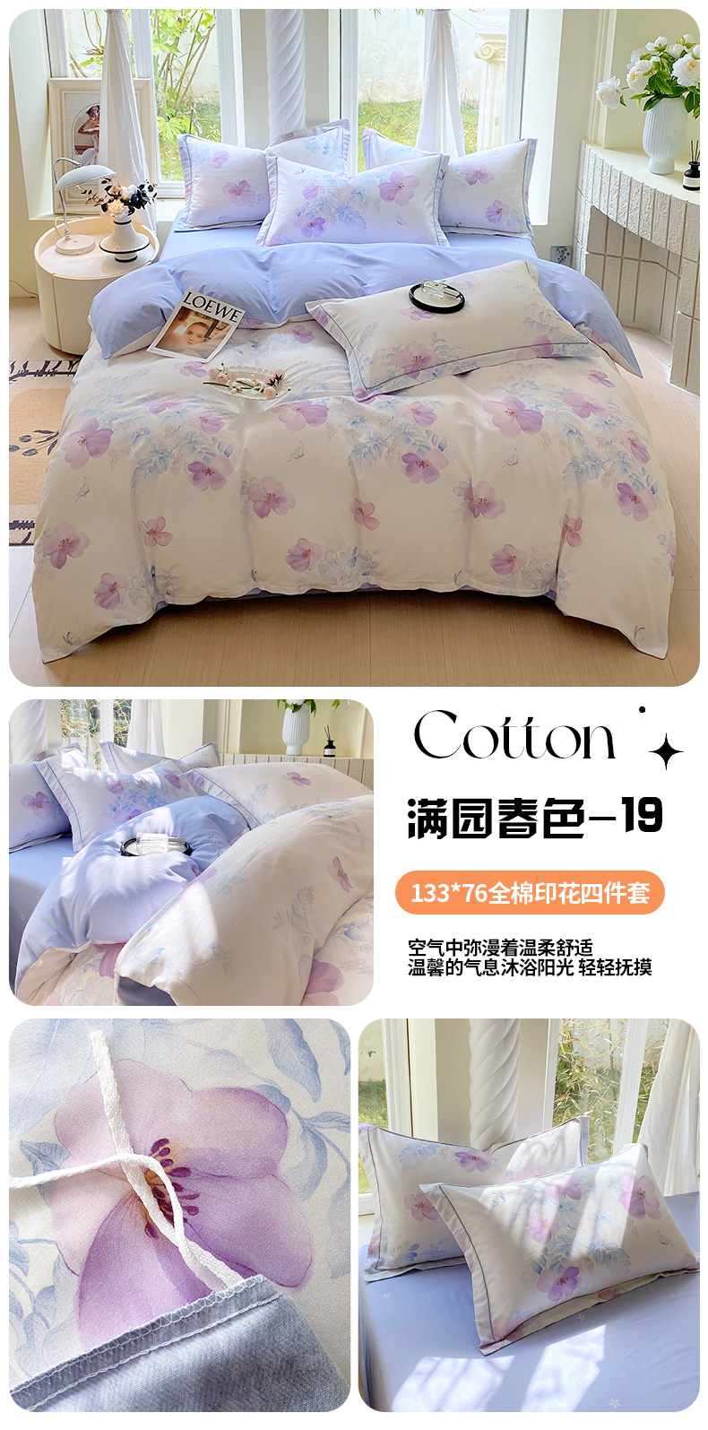 当前位置: 91家纺网 > 商品网购 > 床品套件 > 四件套 > 全棉普通四件套 > 梧桐树 2026新款高支密全棉纯棉印花四件套 A603清雅 紫