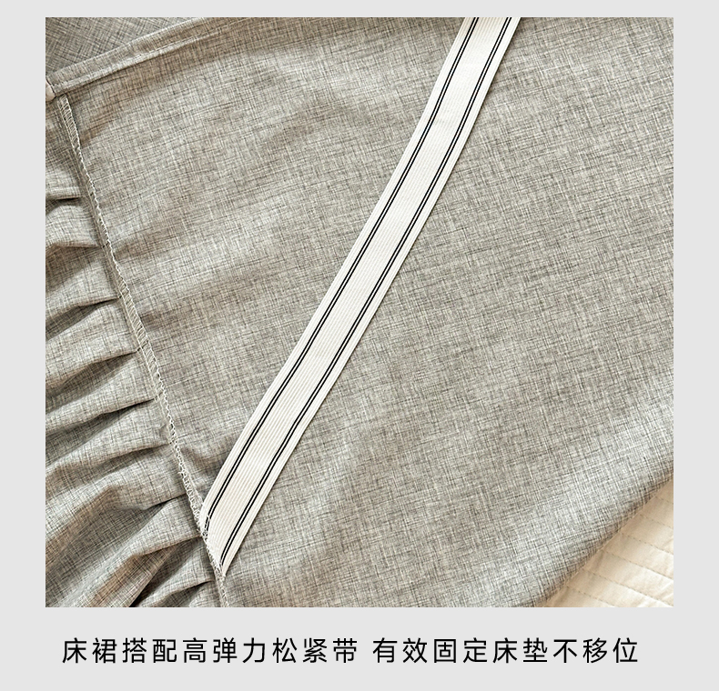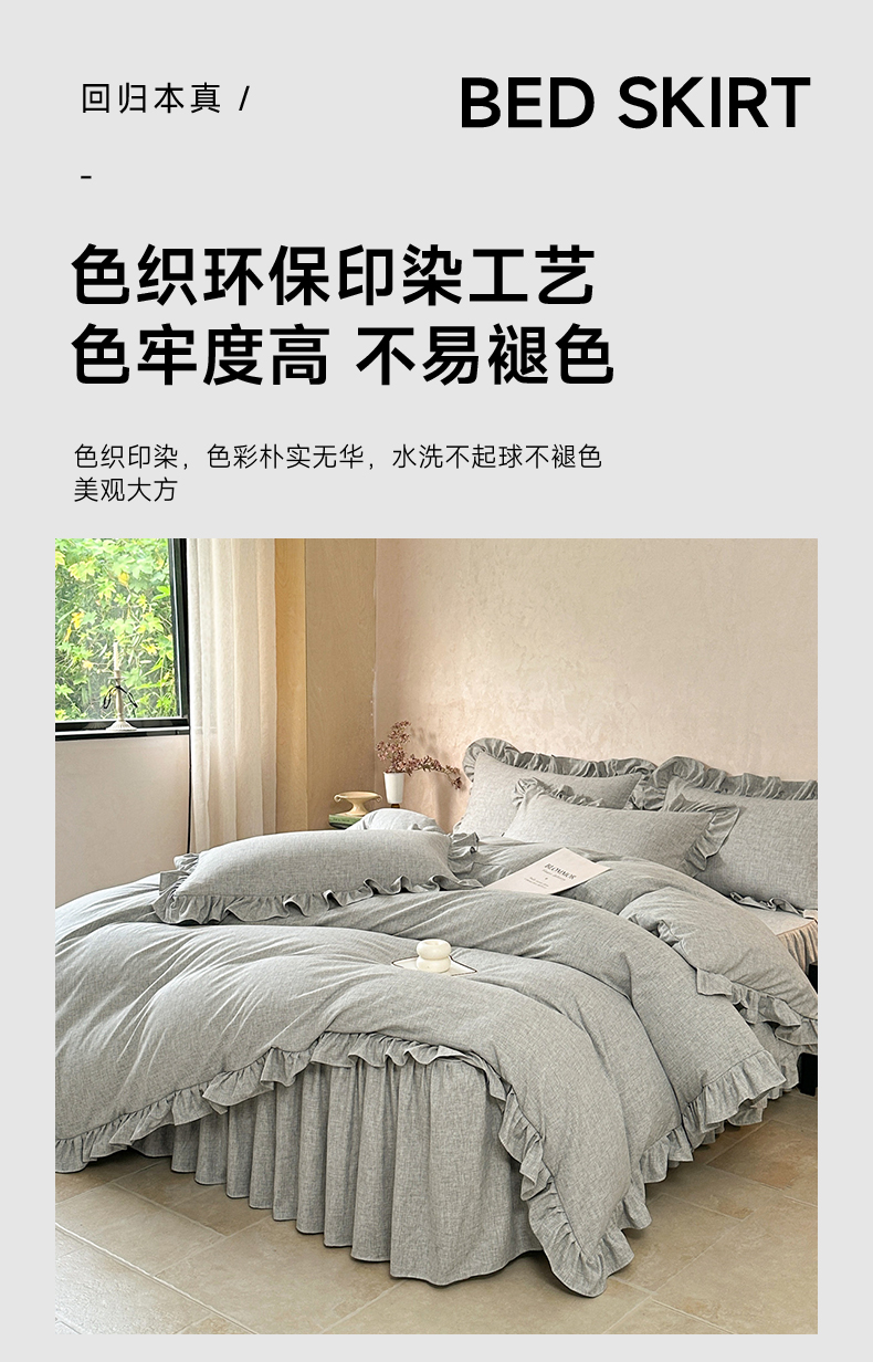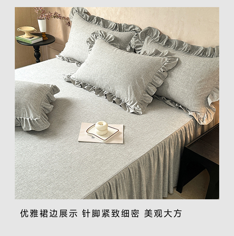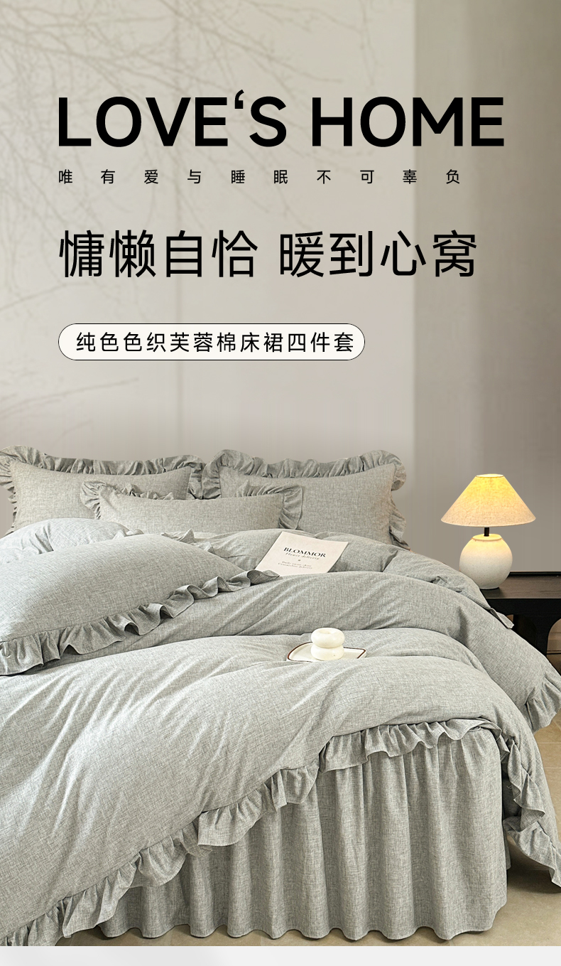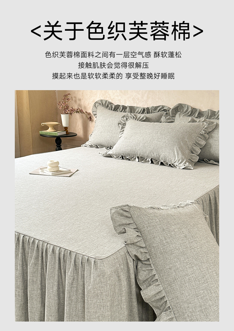 商品名称:忘忧草 2026新款纯色色织芙蓉棉床裙四件套-维密系列 维密-沉稳灰