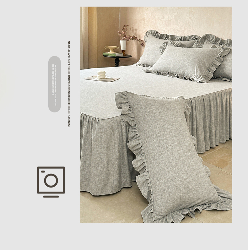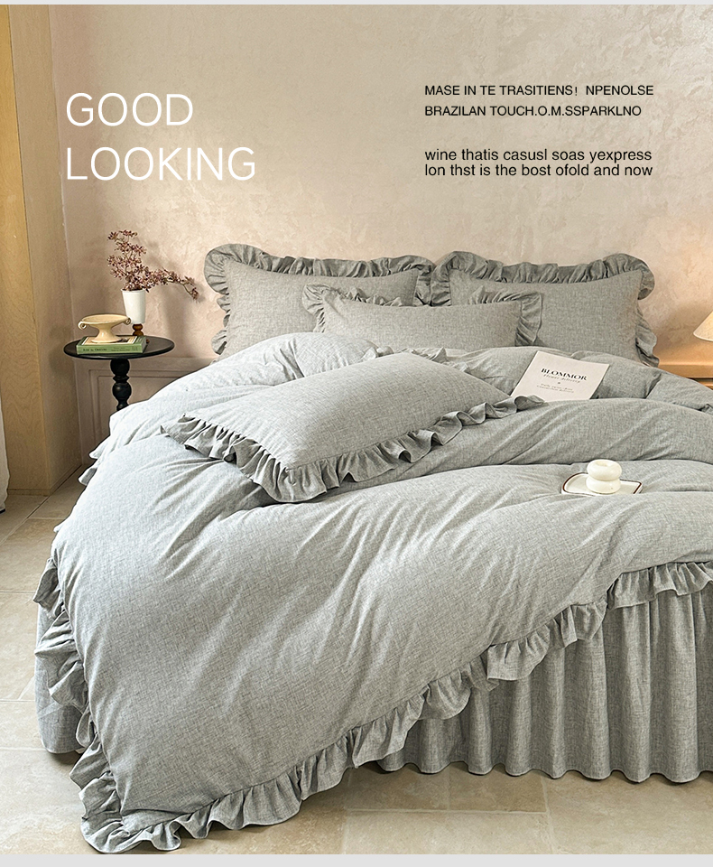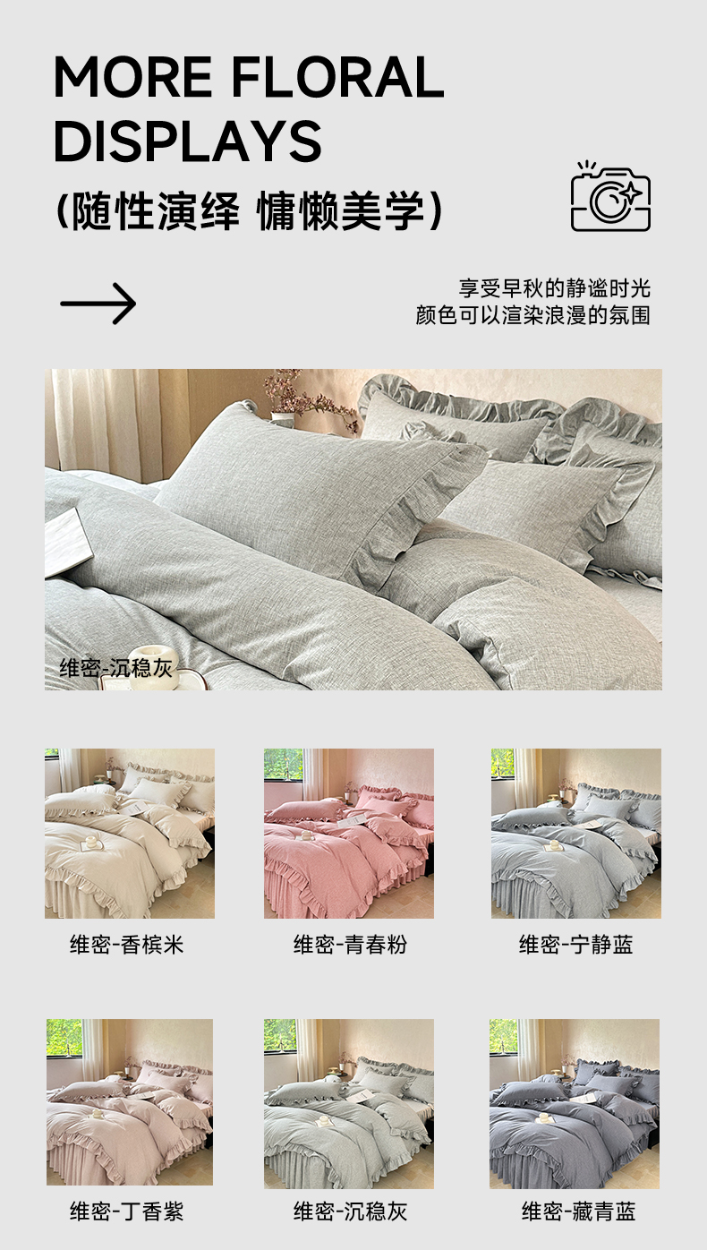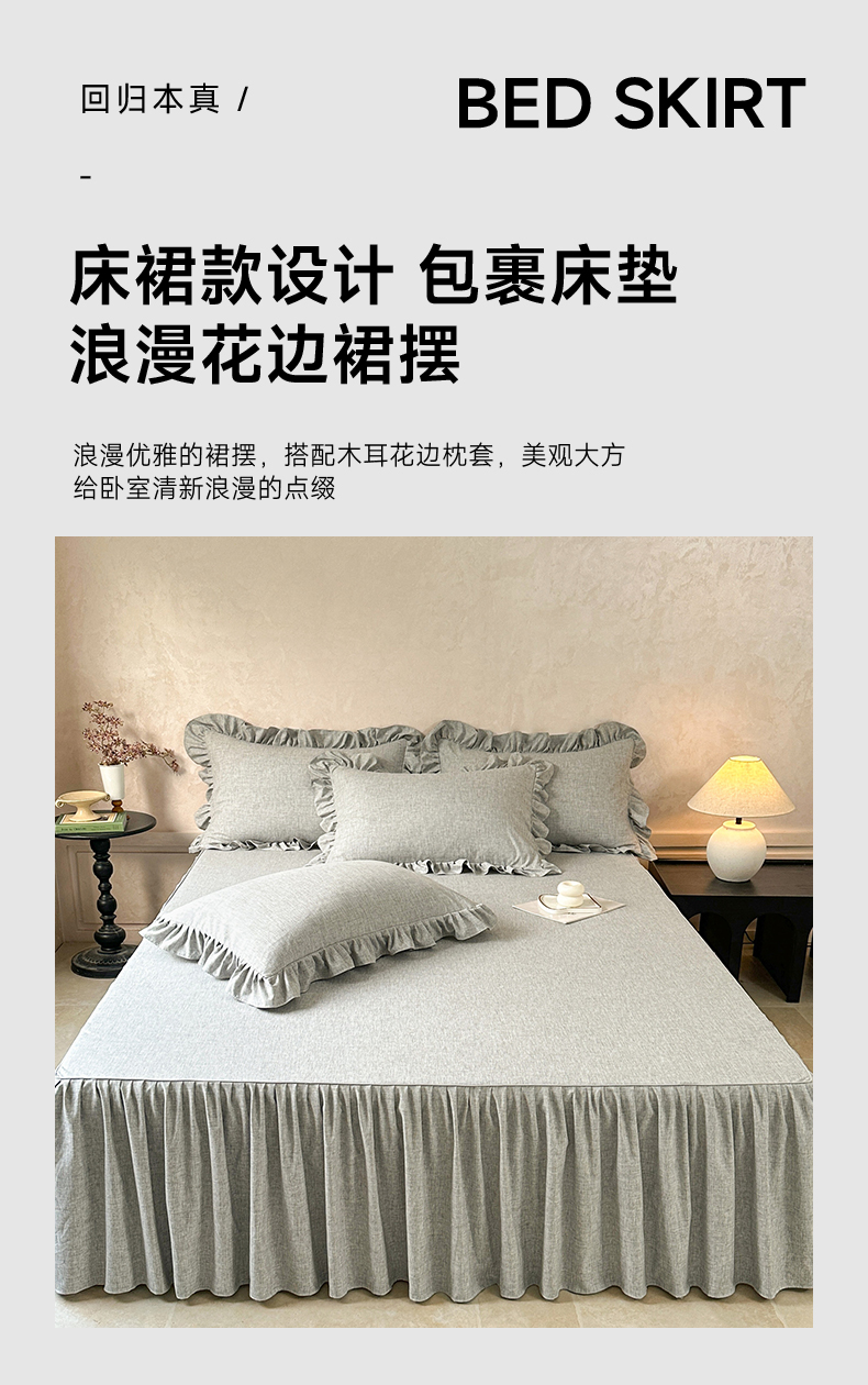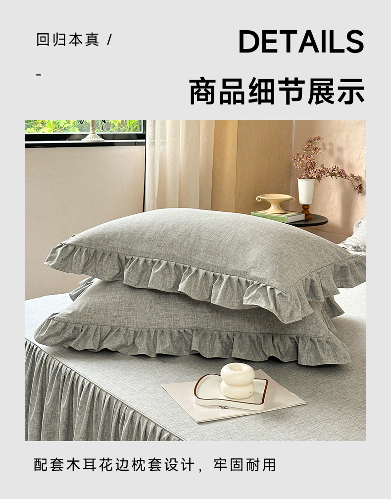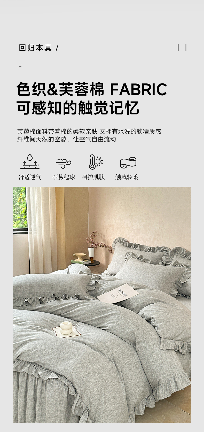 商品名称:忘忧草 2026新款纯色色织芙蓉棉床裙四件套-维密系列 维密-沉稳灰