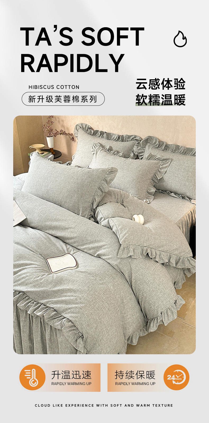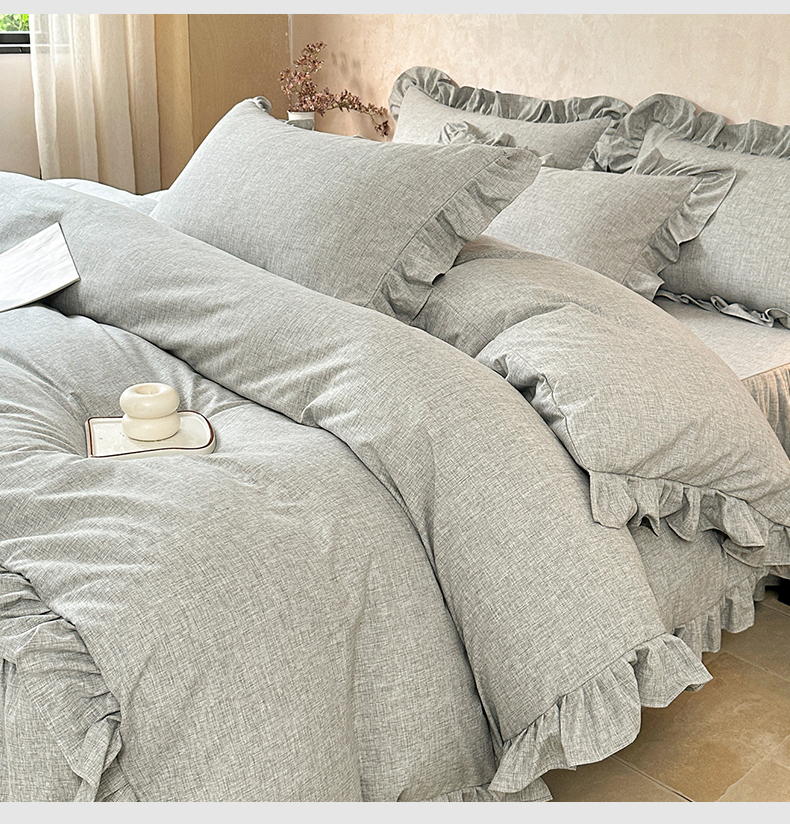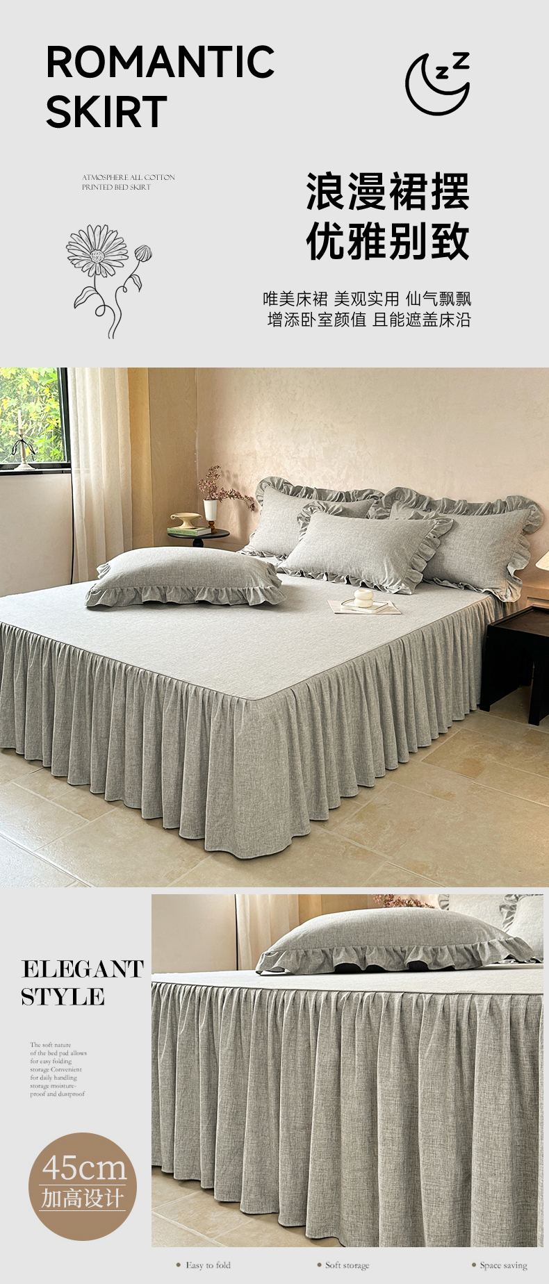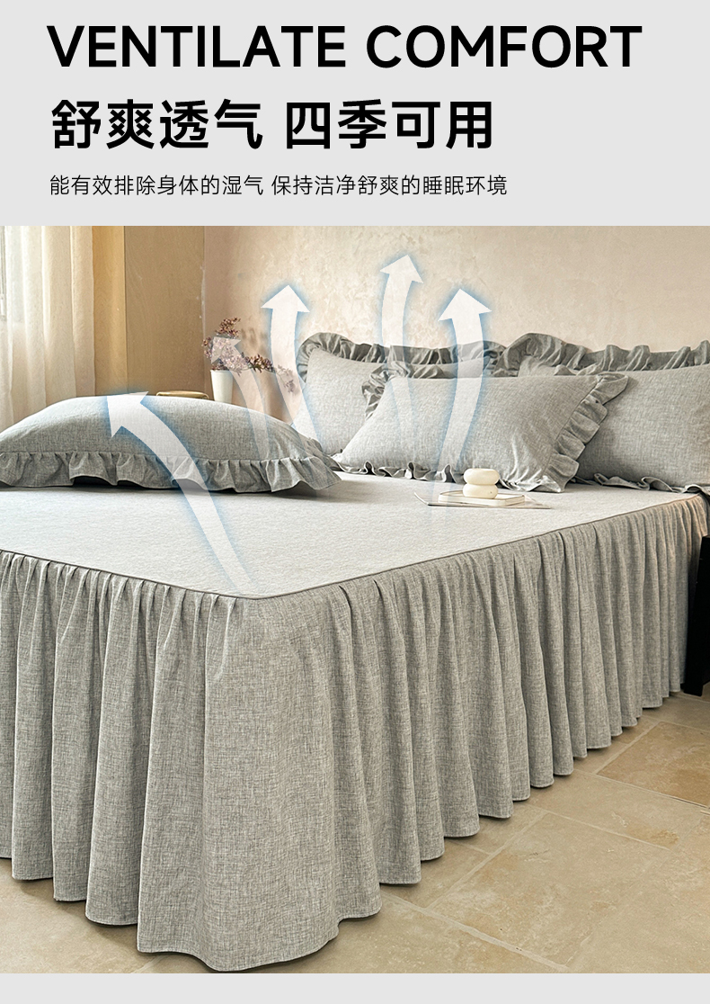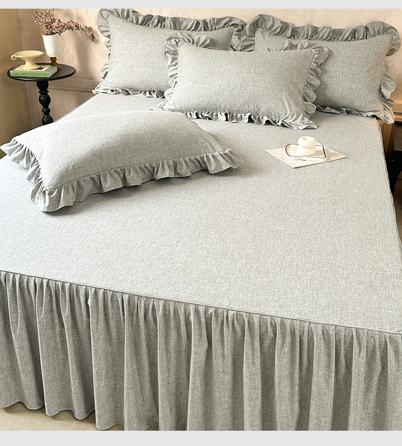 商品名称:忘忧草 2026新款纯色色织芙蓉棉床裙四件套-维密系列 维密-沉稳灰