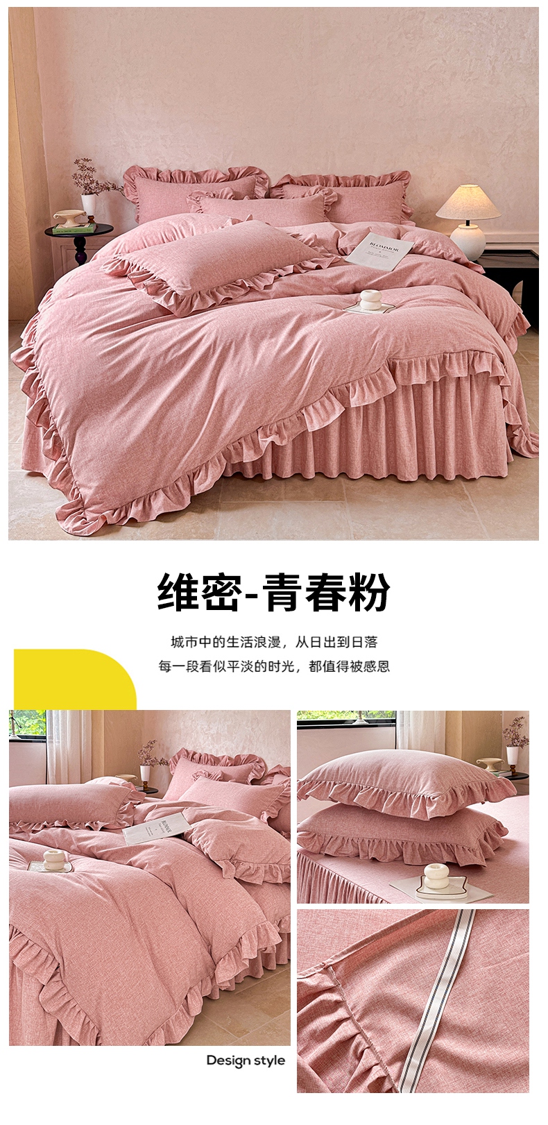 (总)忘忧草 2026新款纯色色织芙蓉棉床裙四件套-维密系列,维密-香槟米,维密-薄荷绿,维密-藏青蓝,维密-沉稳灰,维密-丁香紫,维密-宁静蓝,维密-青春粉