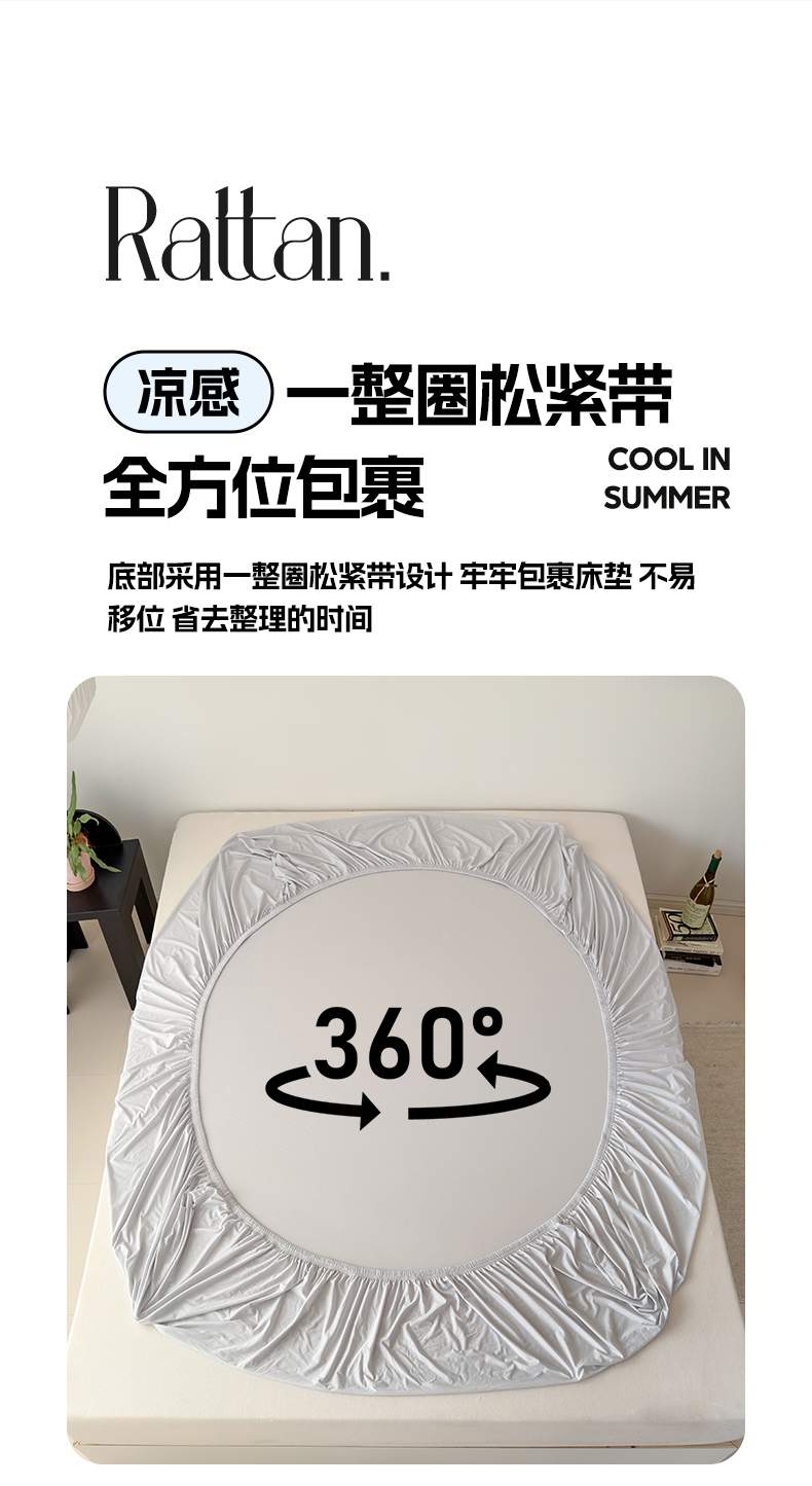 (总)法芙娜家纺 2026新款纯色165克双面锦氨凉感冰皮床笠,粉色,灰色,绿色,杏色,紫色