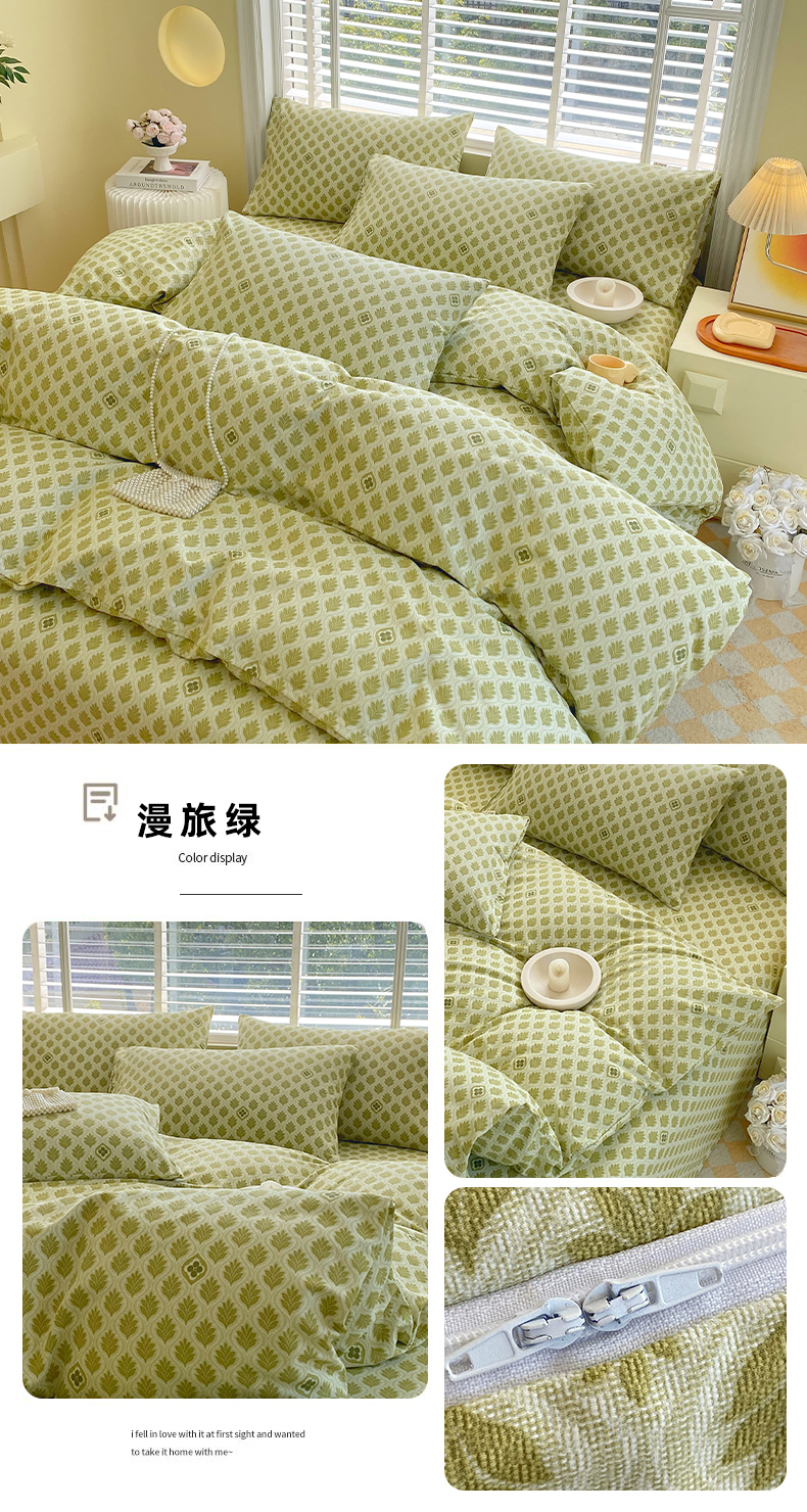 (总)春皖家纺 2026新款全棉纯棉拉链款双层纱四件套,百灵斯顿,夏洛克绿,一丈红,雪花飘,春光灿烂,绮帐-红,绮帐-粉,花漾兰,月临