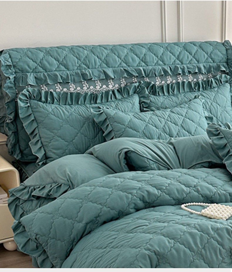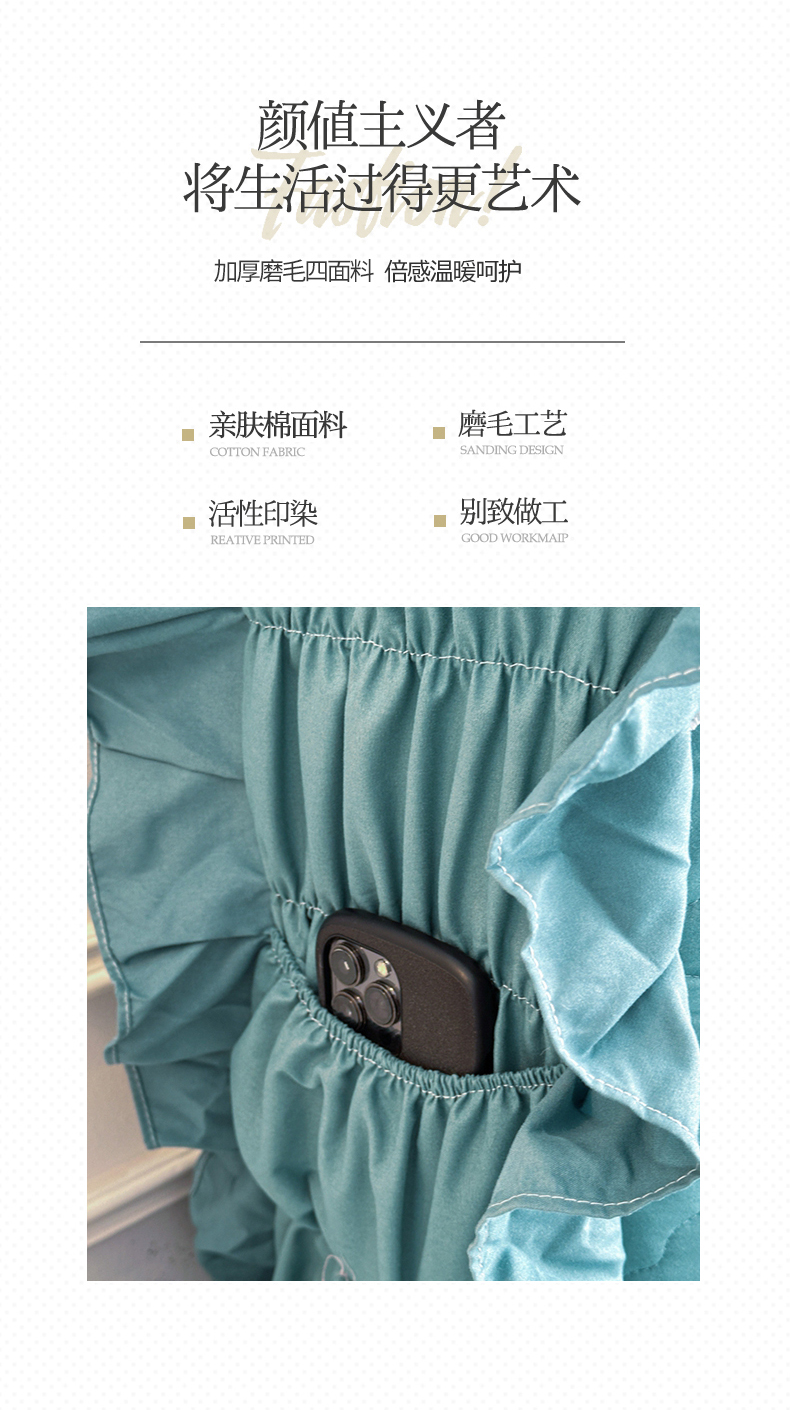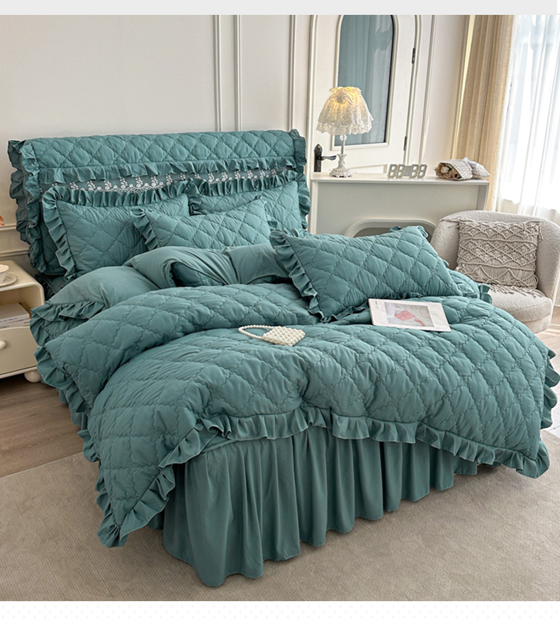 (总)源梦家纺 2024新款幸运草夹棉床裙四件套,纯白,大红,粉色,灰色,兰色,米黄,玉色,豆沙
