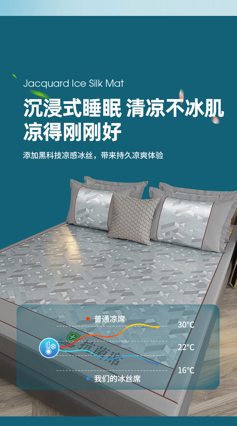 当前位置: 91家纺网 > 商品网购 > 床上用品 > 凉席 > 凉席套件 > 小牛席业 2026新款A加厚款-可机洗抗菌提花冰丝席 抗菌席-魔幻方格-灰色