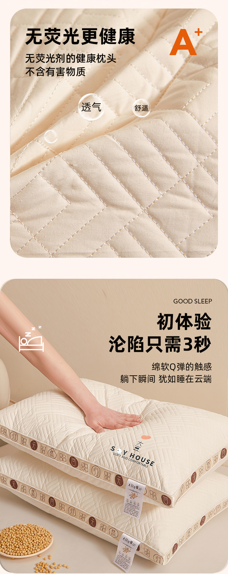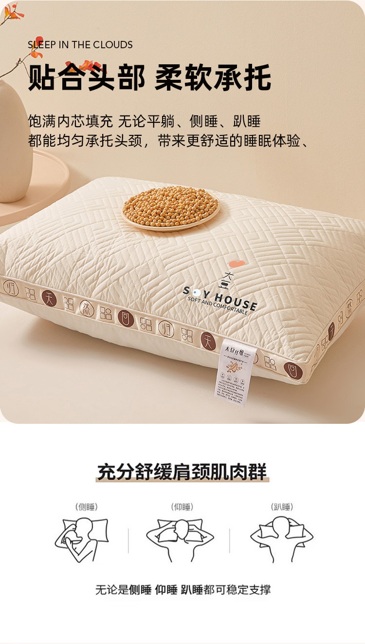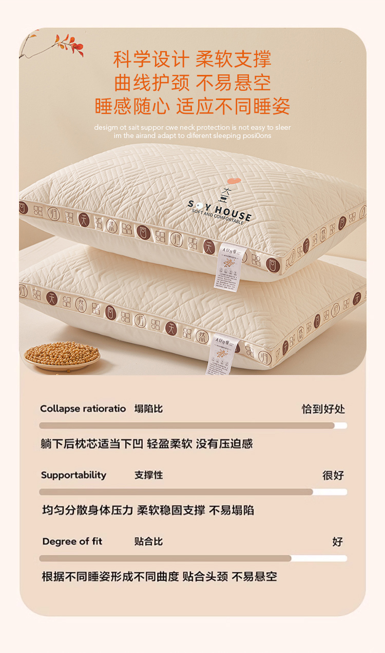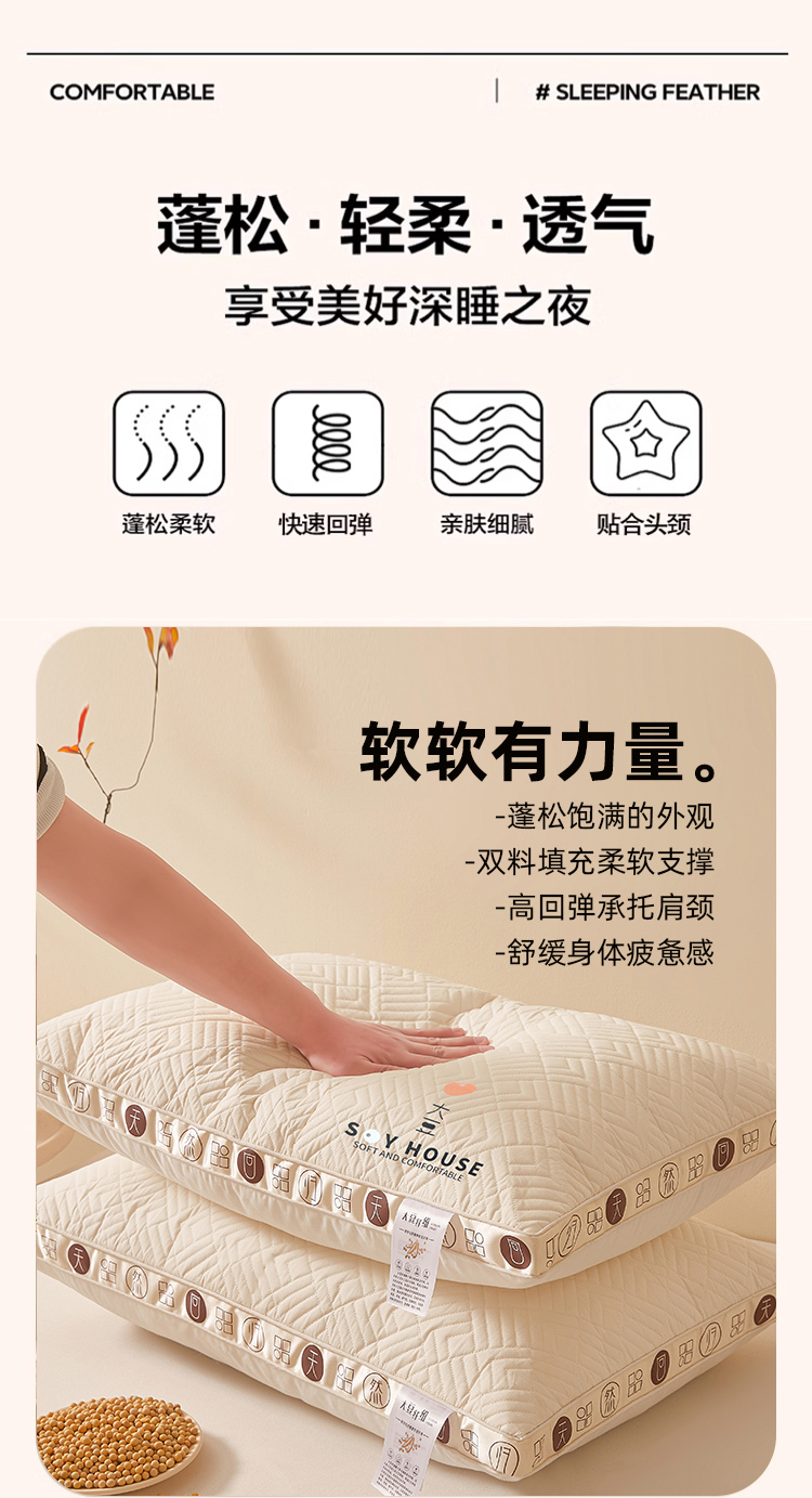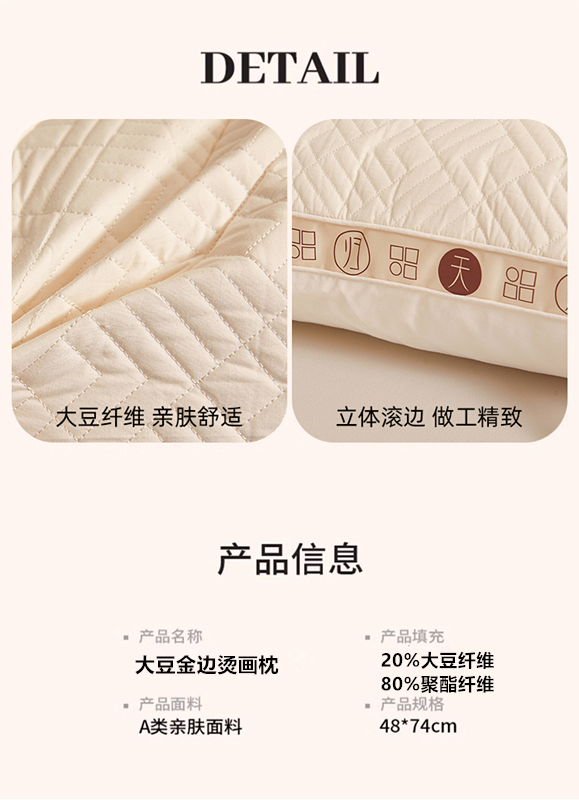 商品名称:(总)小桃姐家纺 2025新款大豆金边烫画枕头枕芯性价比冲量款