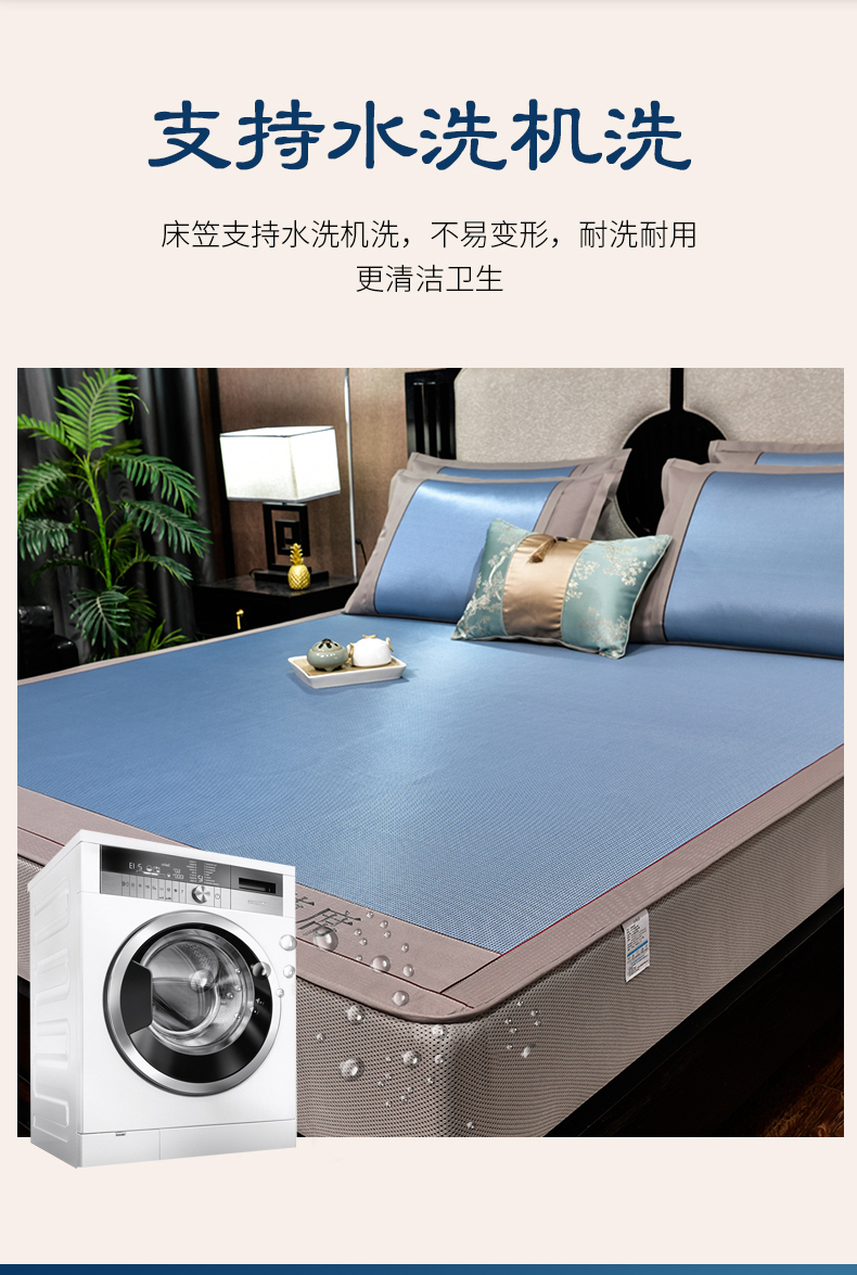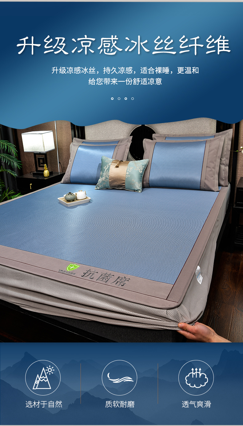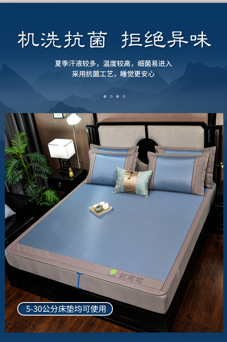 (总)2023新款超精密冰丝席-小斜纹系列-床笠款藤席凉席竹席,粉色,蓝色,绿色,银灰