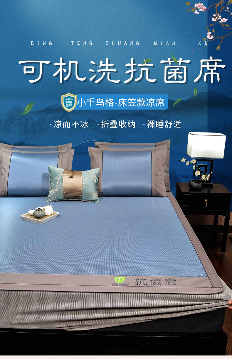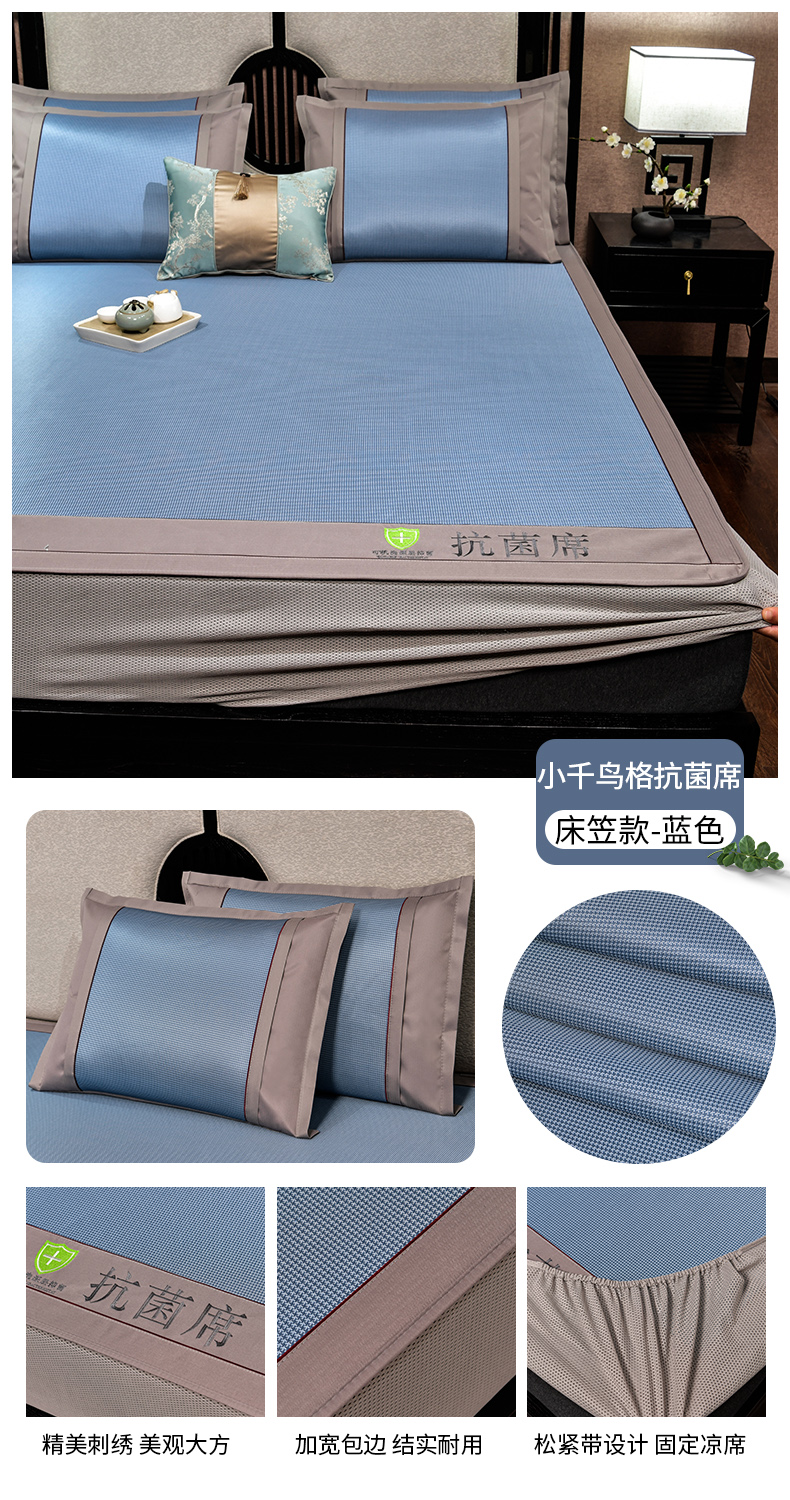 商品名称:小牛席业 2026新款小千鸟格-经典款抗菌席(床笠款) 蓝色