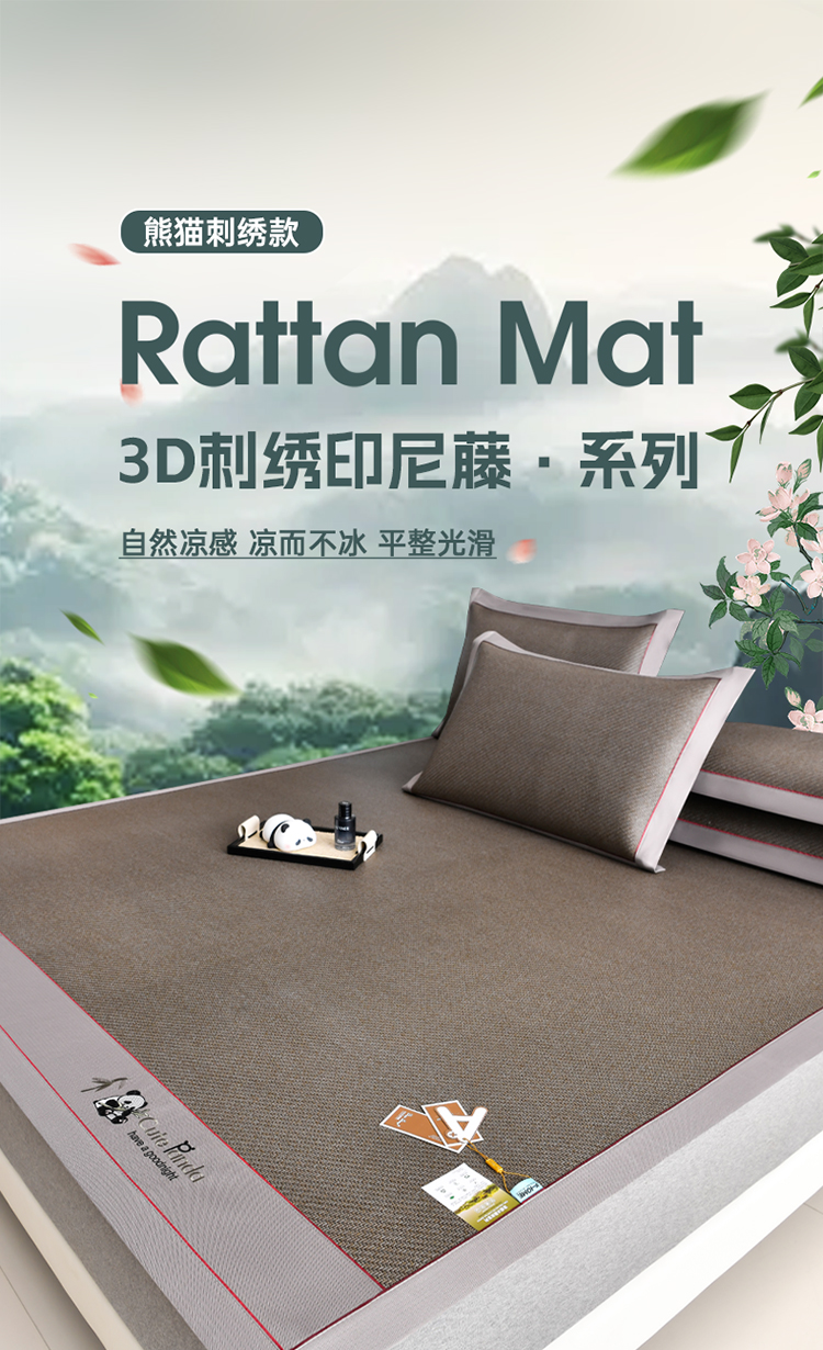 商品名称:小牛席业 2026新款3D刺绣印尼藤-熊猫刺绣款(10斤加厚) 黄藤