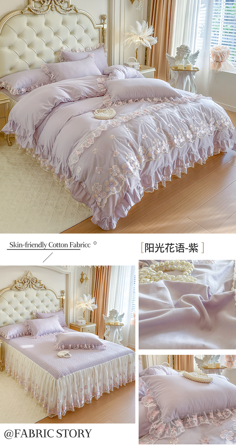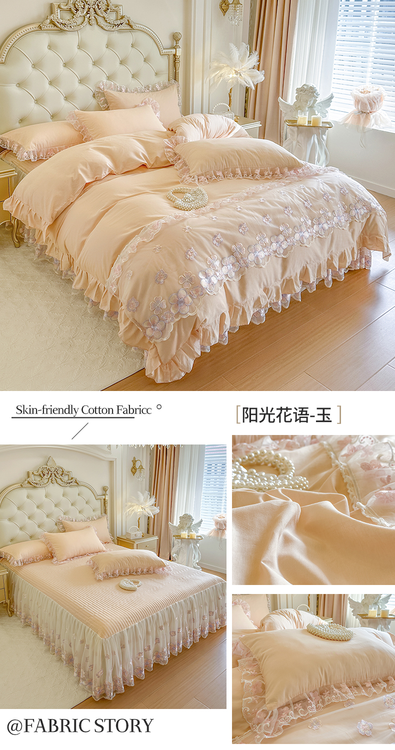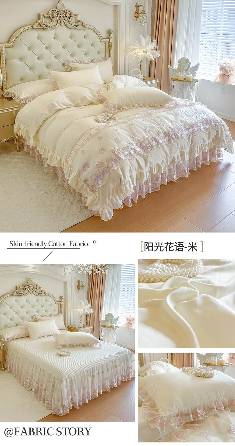 当前位置: 91家纺网 > 商品网购 > 床品套件 > 四件套 > 全棉普通四件套 > 网红馆(ck家纺) 2026春夏新款阳光花语全棉纯棉床裙四件套 阳光花语 米