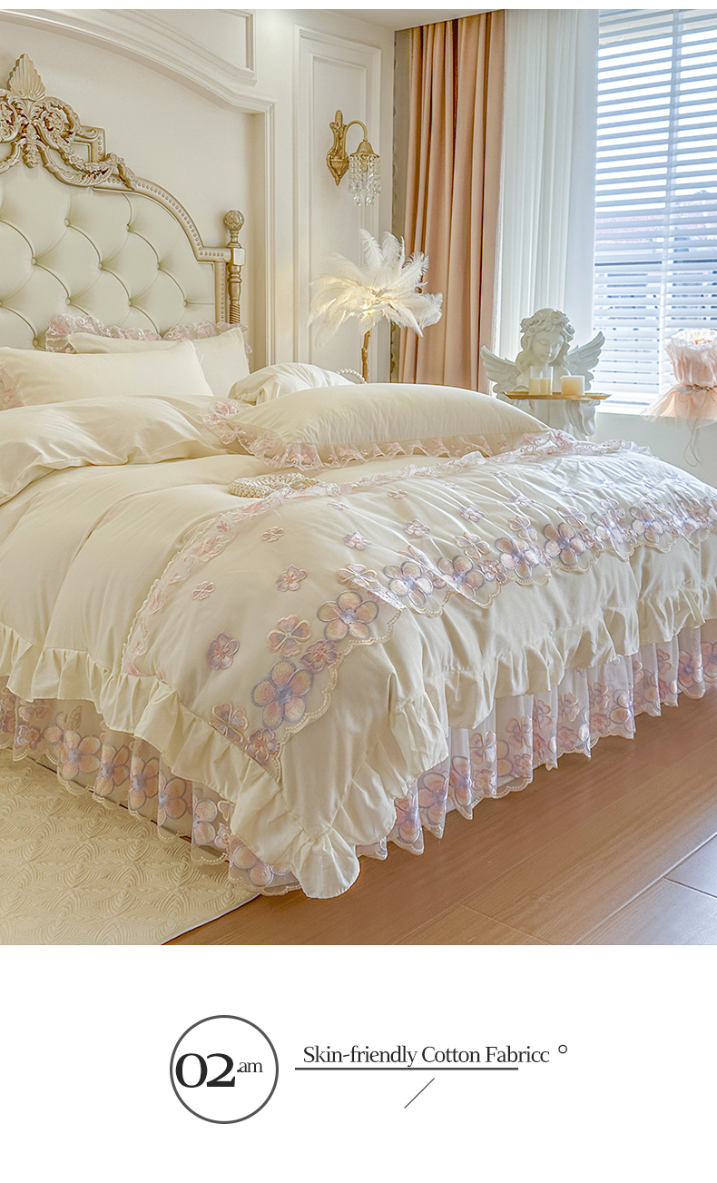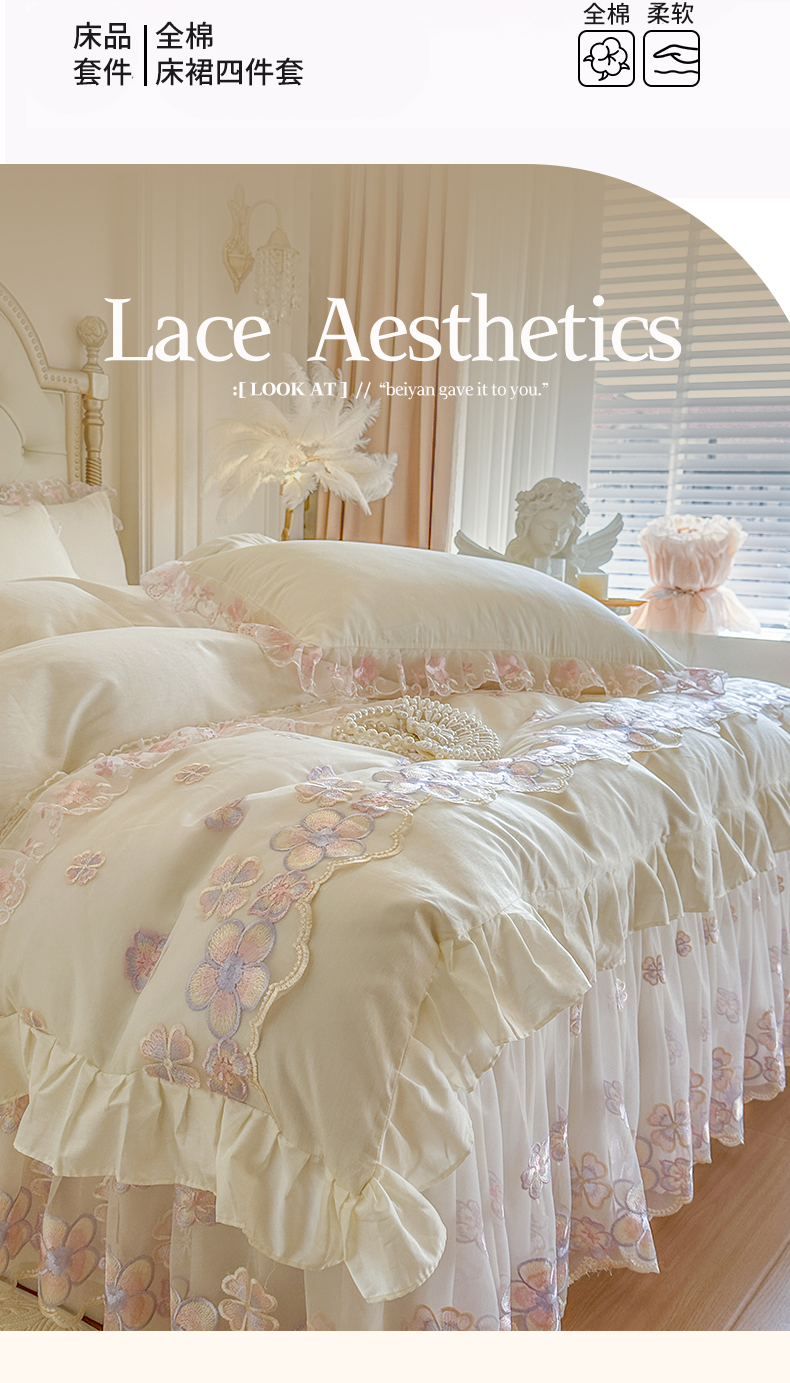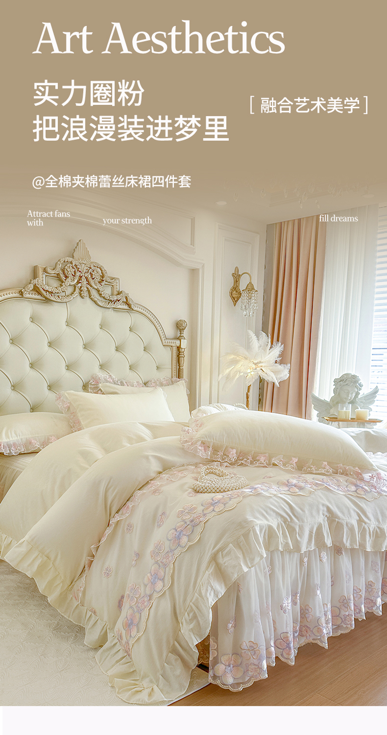 当前位置: 91家纺网 > 商品网购 > 床品套件 > 四件套 > 全棉普通四件套 > 网红馆(ck家纺) 2026春夏新款阳光花语全棉纯棉床裙四件套 阳光花语 米