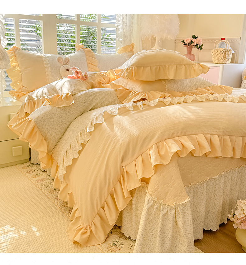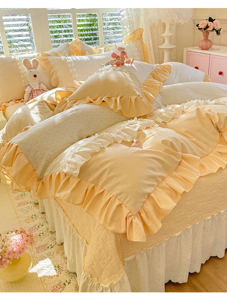 漫布云2026春夏新品韩版公主风小清新水洗棉床盖四件套针织棉双层纱纯棉棉麻全棉公主风床盖款四件套,花漾甜心-樱花粉,花漾甜心-嫩芽绿,花漾甜心-柠檬黄 ,花漾甜心-香芋紫, 花漾甜心-梦幻蓝