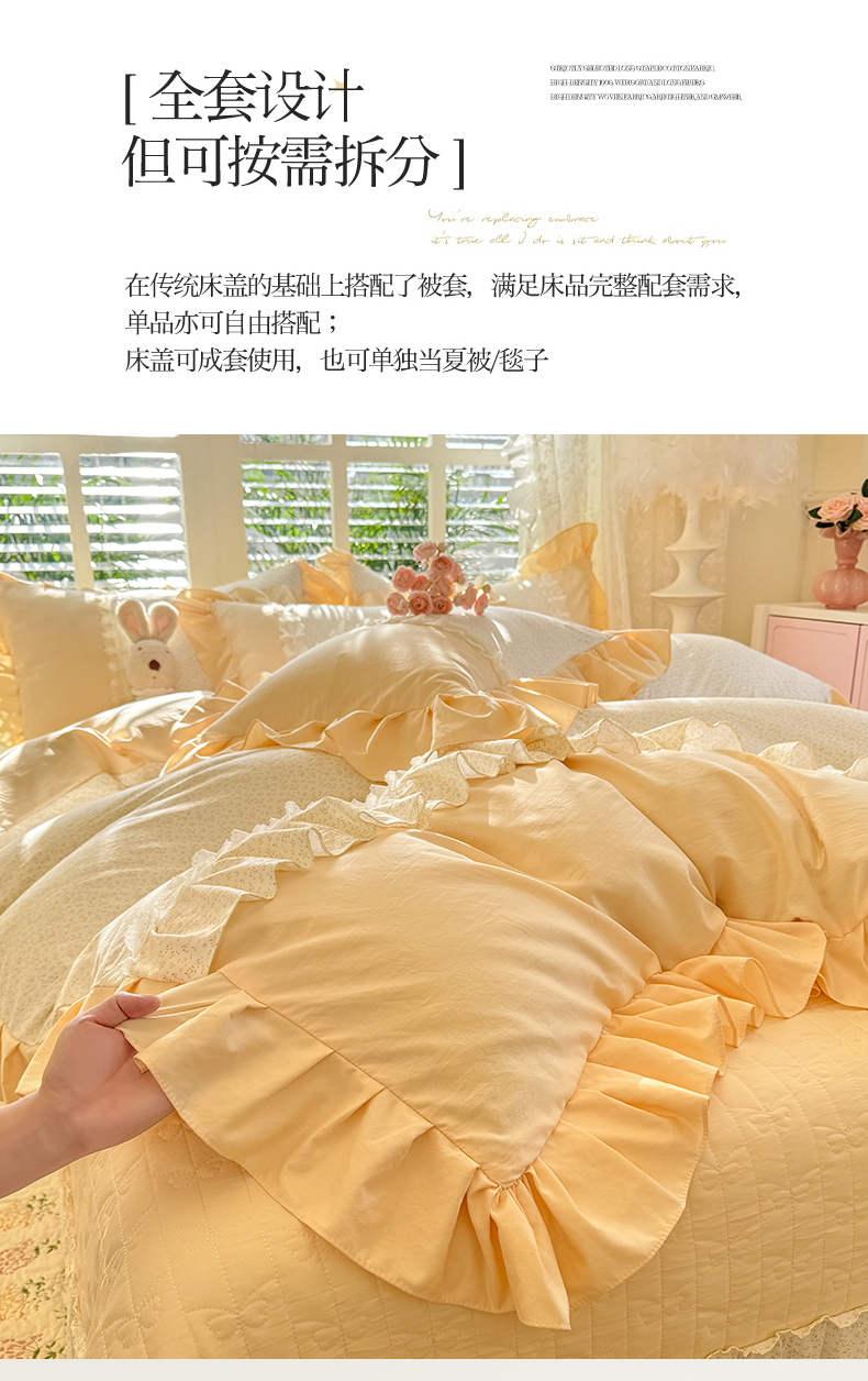 (总)(总)专柜品质苏米娜家纺2026春夏韩版法式公主风水洗棉床盖款多功能二合一被套 夏被床盖四件套--花颜系列,花颜-樱花粉 ,花颜-梦幻蓝 ,花颜-奶油白 ,花颜-嫩芽绿 ,花颜-香芋紫