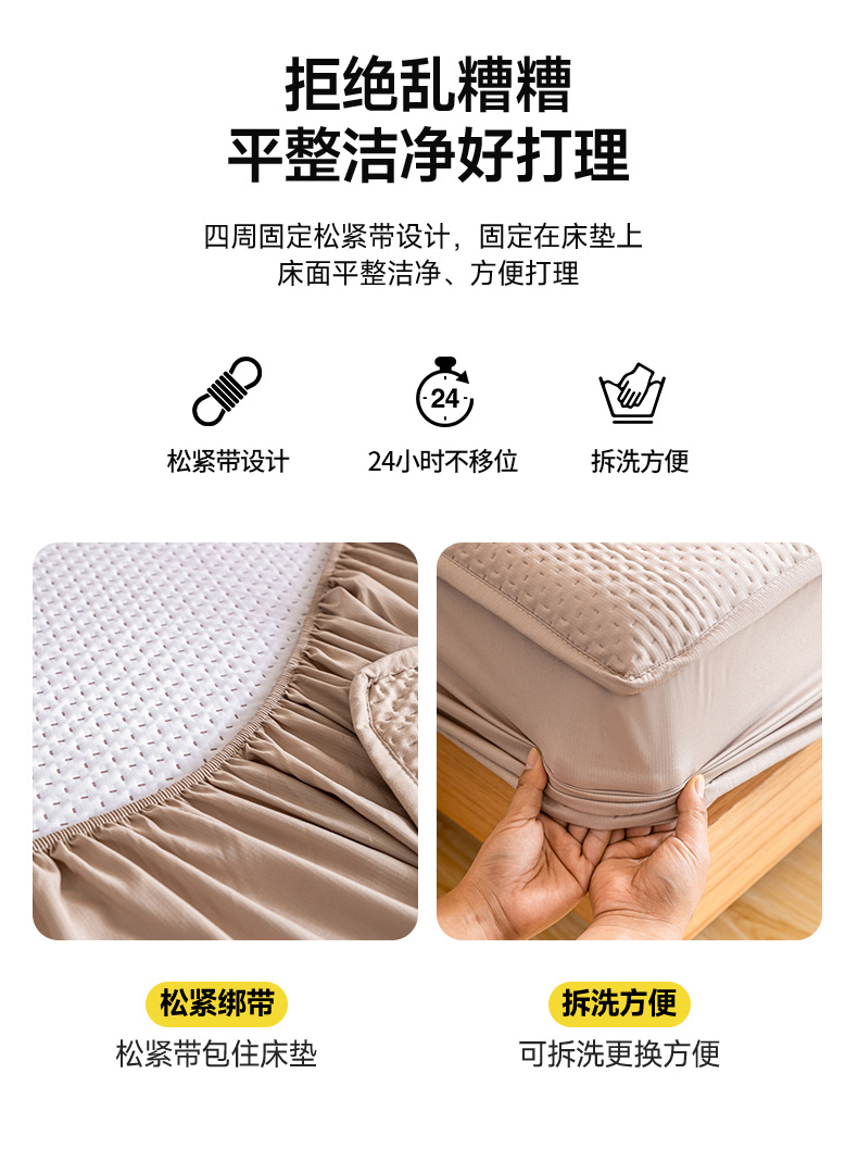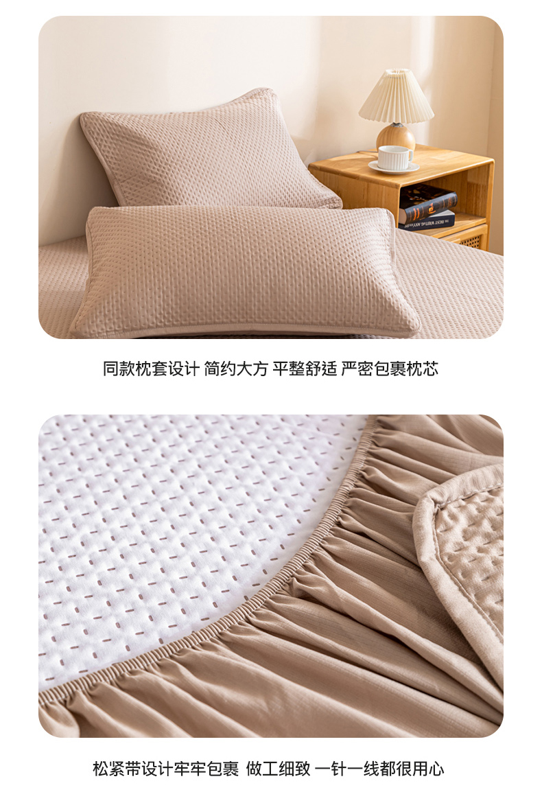 • 91家纺网 家纺一手货源 找家纺 (总)宇淳国际 2026新款美人条A类水洗棉夹棉床笠三件套,白色,卡其,奶黄,浅灰,深灰,天蓝