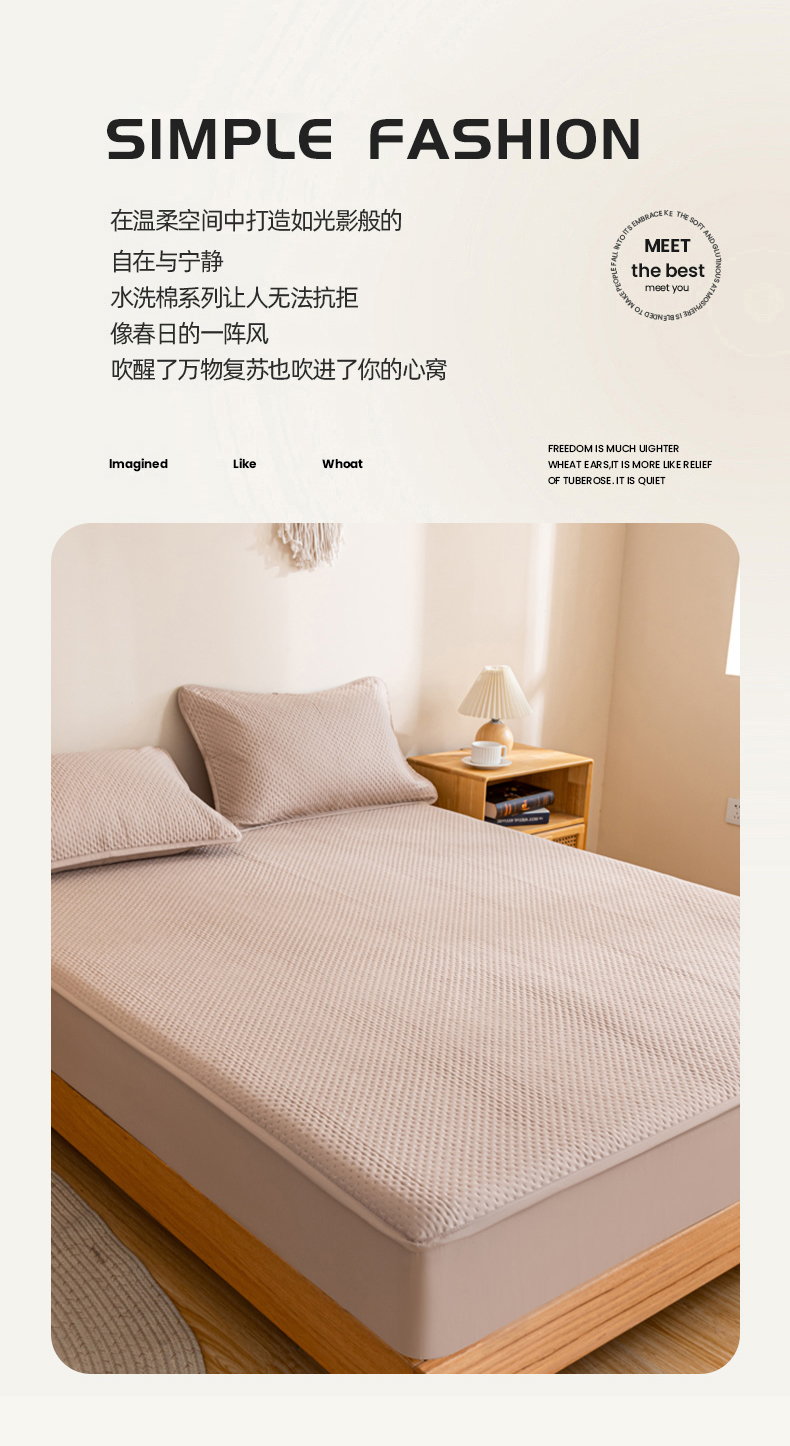 (总)宇淳国际 2026新款美人条A类水洗棉夹棉床笠三件套,白色,卡其,奶黄,浅灰,深灰,天蓝