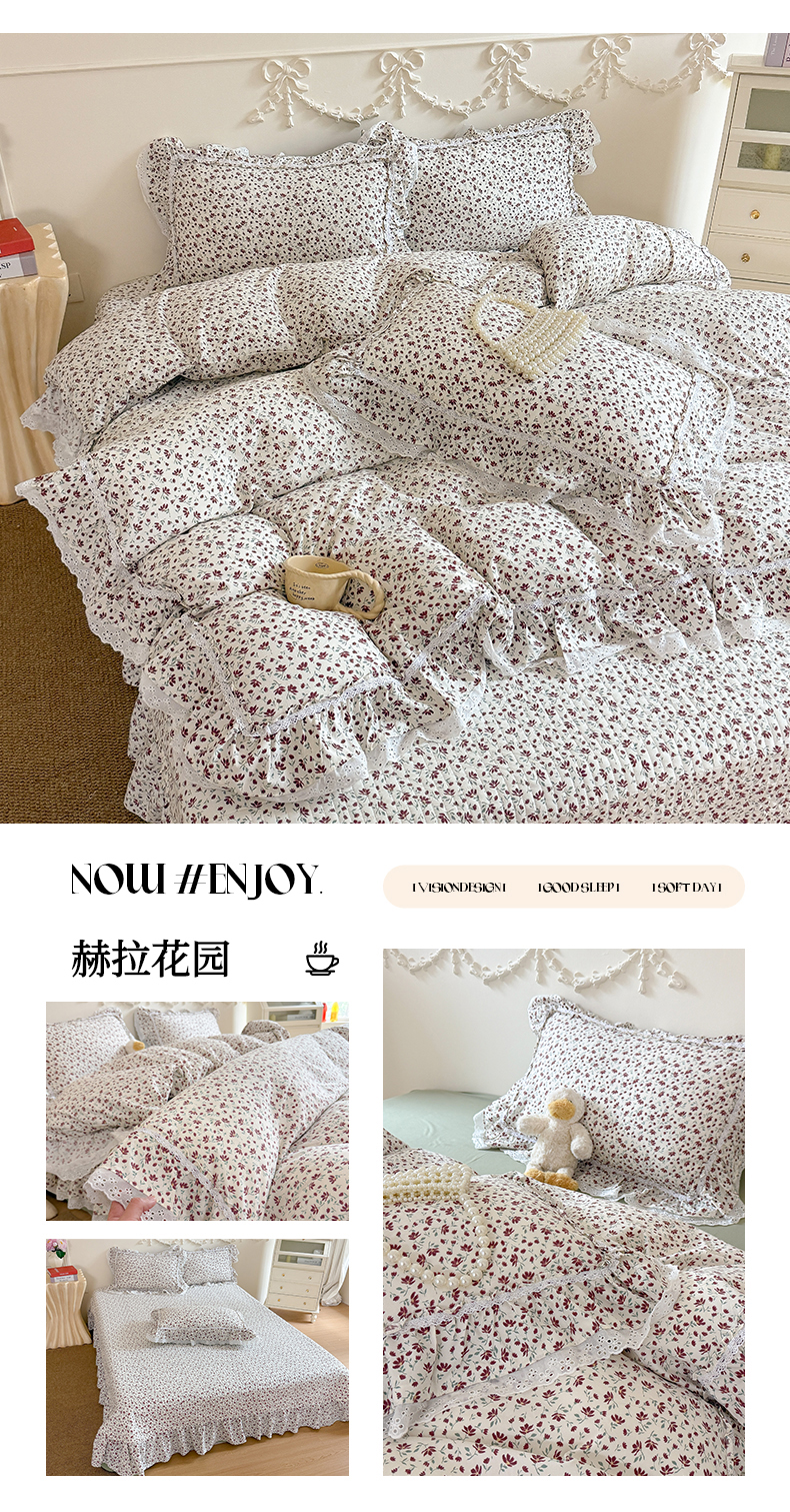 (总)吾欢心 2026新款古法水洗棉韩版公主风双层花边四件套,赫拉花园,花间拾梦,花开半夏,花仙子,花园漫步,花园小熊,花韵,快乐小狗,梨花梦,露花浓,梦幻岛,晚安狗,嫣然如梦