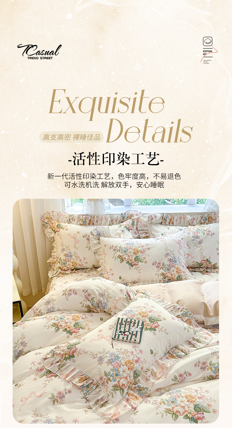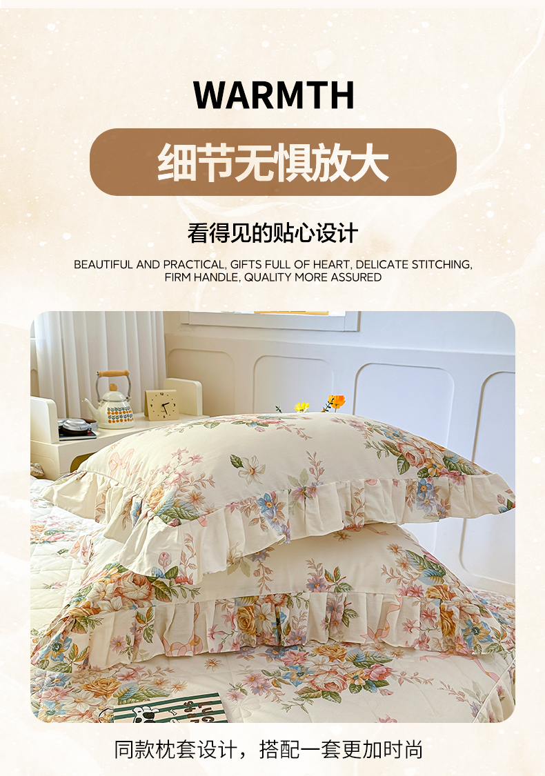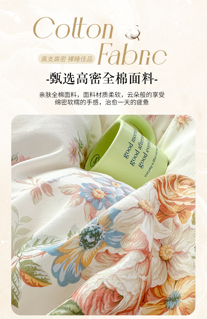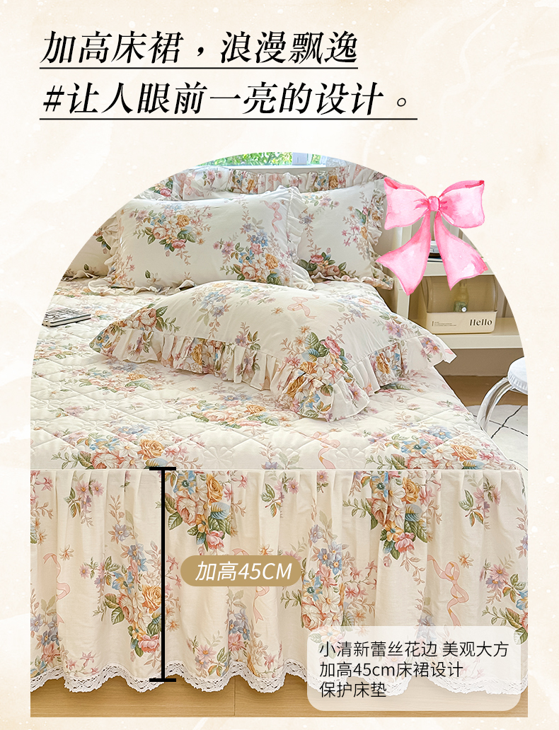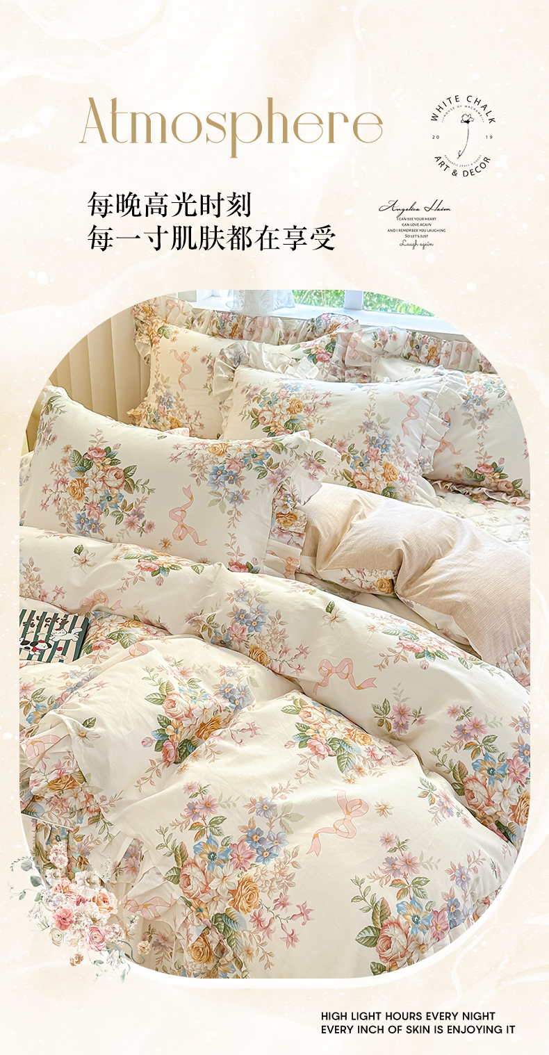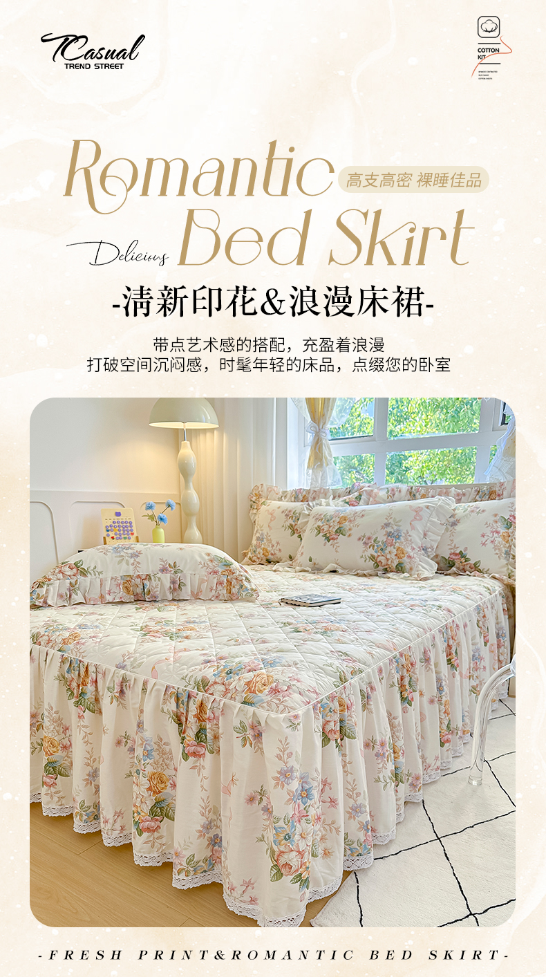 当前位置: 91家纺网 > 商品网购 > 床品套件 > 四件套 > 全棉普通四件套 > 忘忧草 2026新款全棉夹棉印花床裙四件套单被套 花颜悦色