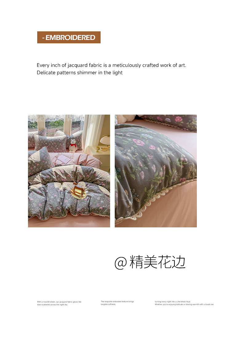 (总)宅家居 2025新款热卖热款轻法式复古赫本风绒高克重浮雕花牛奶绒四件套烂花韩版黑色花边三件套,丛林迷影,蝶之花语,花恋密语,叶语悠然,蝶舞恋曲,花岸澜庭,壹枝玫瑰,夜半花香,优雅花卉