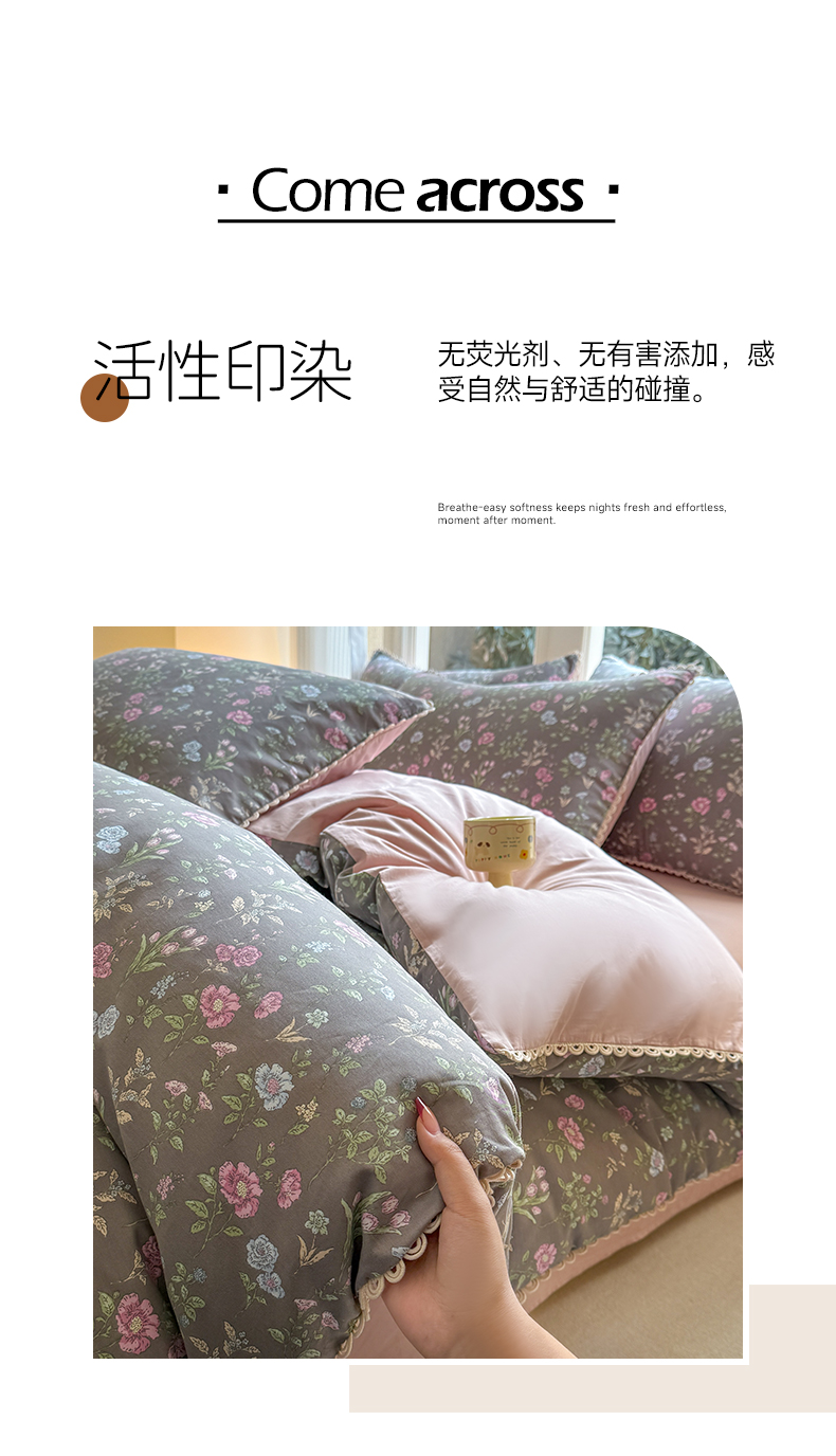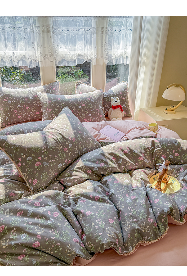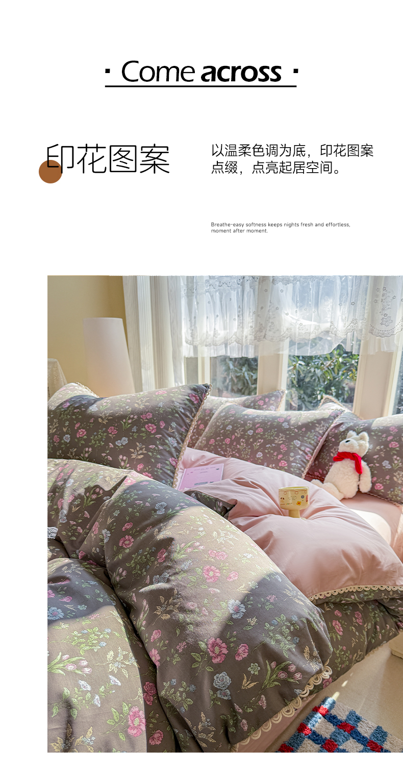 商品名称:(总)宅家居 2026爆款田园风甜美小清新喷气印花纯棉四件套韩式圈圈花边40支全棉三件套