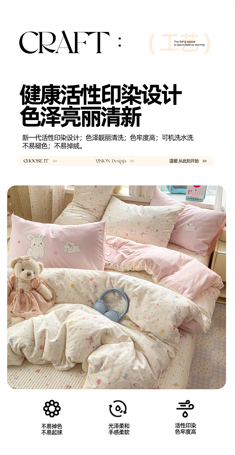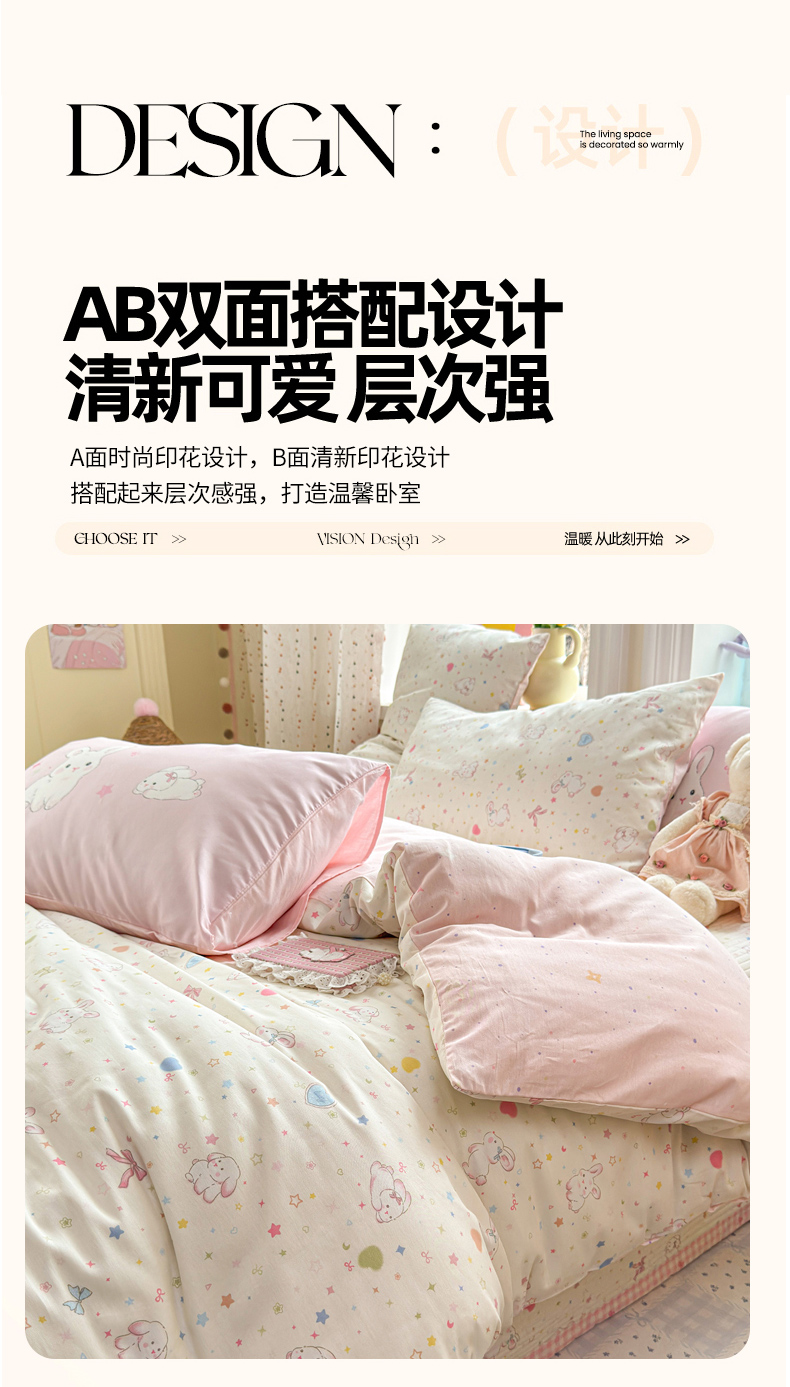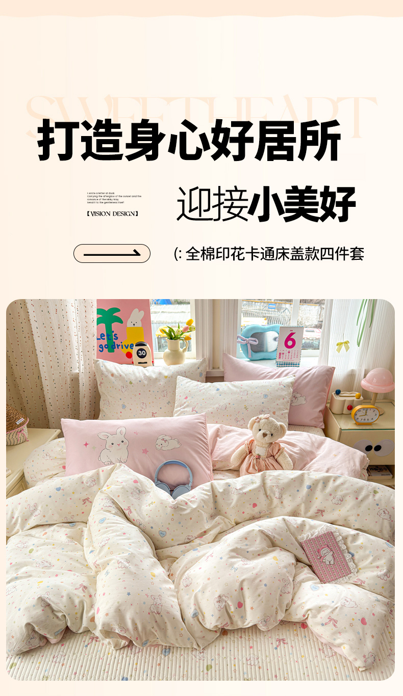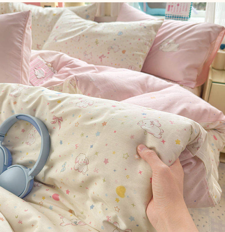 当前位置: 91家纺网 > 商品网购 > 床品套件 > 四件套 > 全棉普通四件套 > Sweet dreams甜梦 2026新款小清新卡通全棉纯棉印花床盖四件套 星星小兔