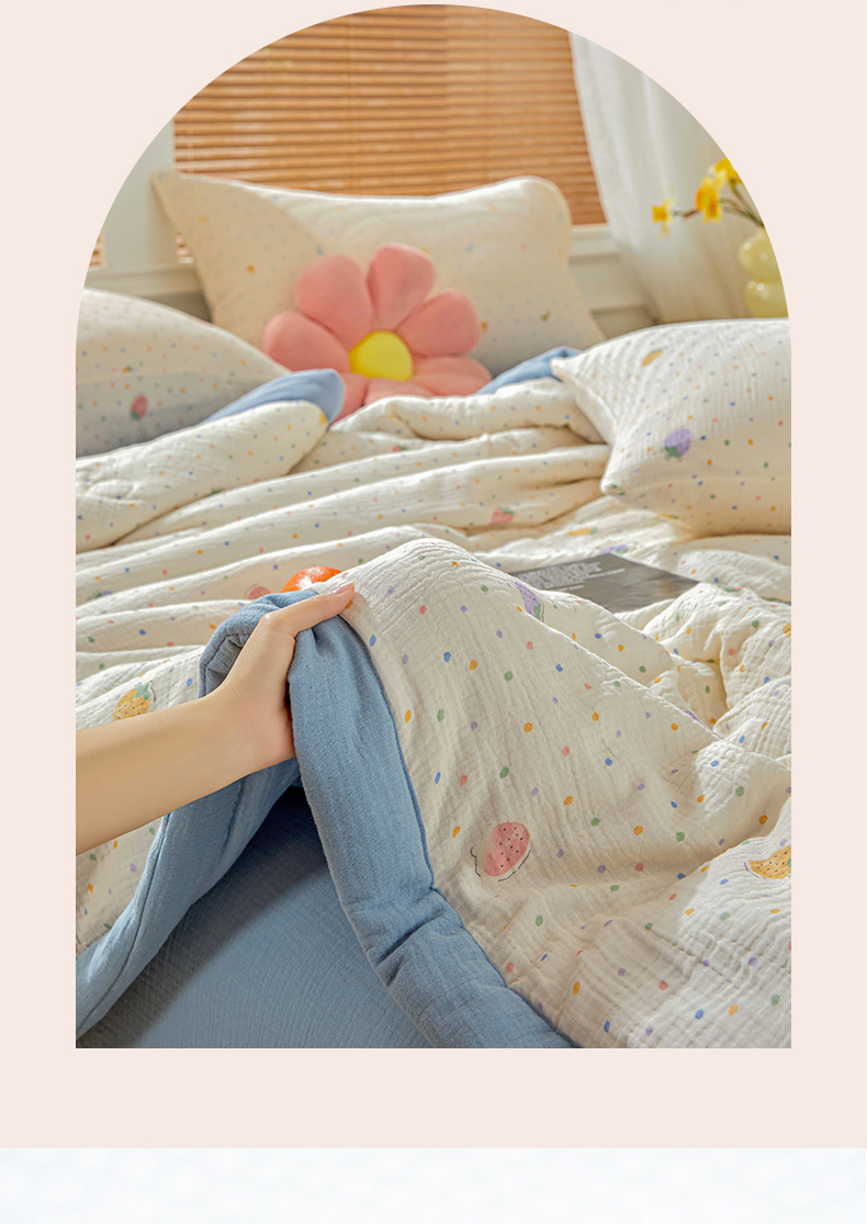 (总)恬思语家纺 2026春夏全棉双层纱棉花夏被空调被夏凉被四件套贝壳边系列,Ш櫻漫语,彩星芒,春晓-粉,春晓-绿,粉粉猫,花从兔-紫,咖啡狗,蓝汐-灰,南瓜派对,浅花町,阳光小马,云絮花-蓝,组合图仅供参考不可下单